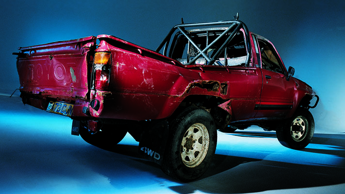You might recognise this legendary Toyota Hilux, equipped with a Safety Devices roll cage. It now holds a place of honour, permanently displayed on a plinth against the back wall of BBC TV’s Top Gear studio, as a timeless museum piece. Toyota claims their Hilux Pick-Up is virtually indestructible, and the Top Gear team put theory to the test.