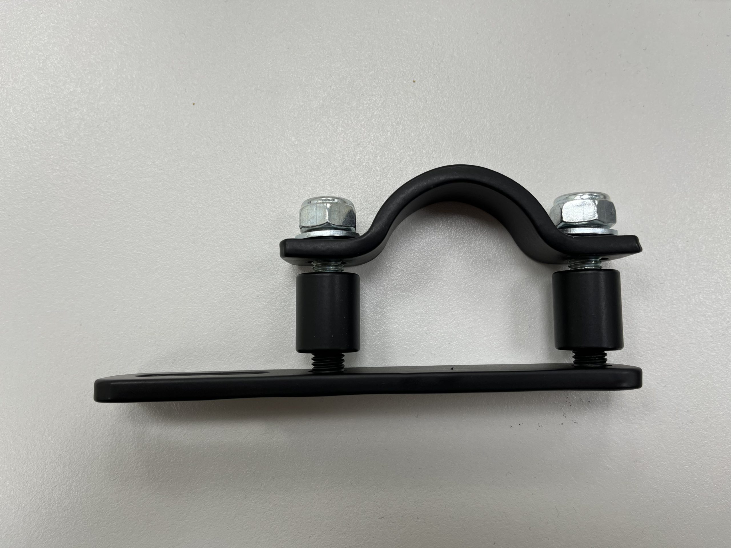 This roof tent mounting bracket is suitable for any roll cages using 44.45mm outer diameter tubing. The bracket is provided with threaded studs that are fixed in their position to enable easier installation of roof tents. The clamps are grit blasted, primed with a zinc enriched powder undercoat, and finished with a durable black powder coat.