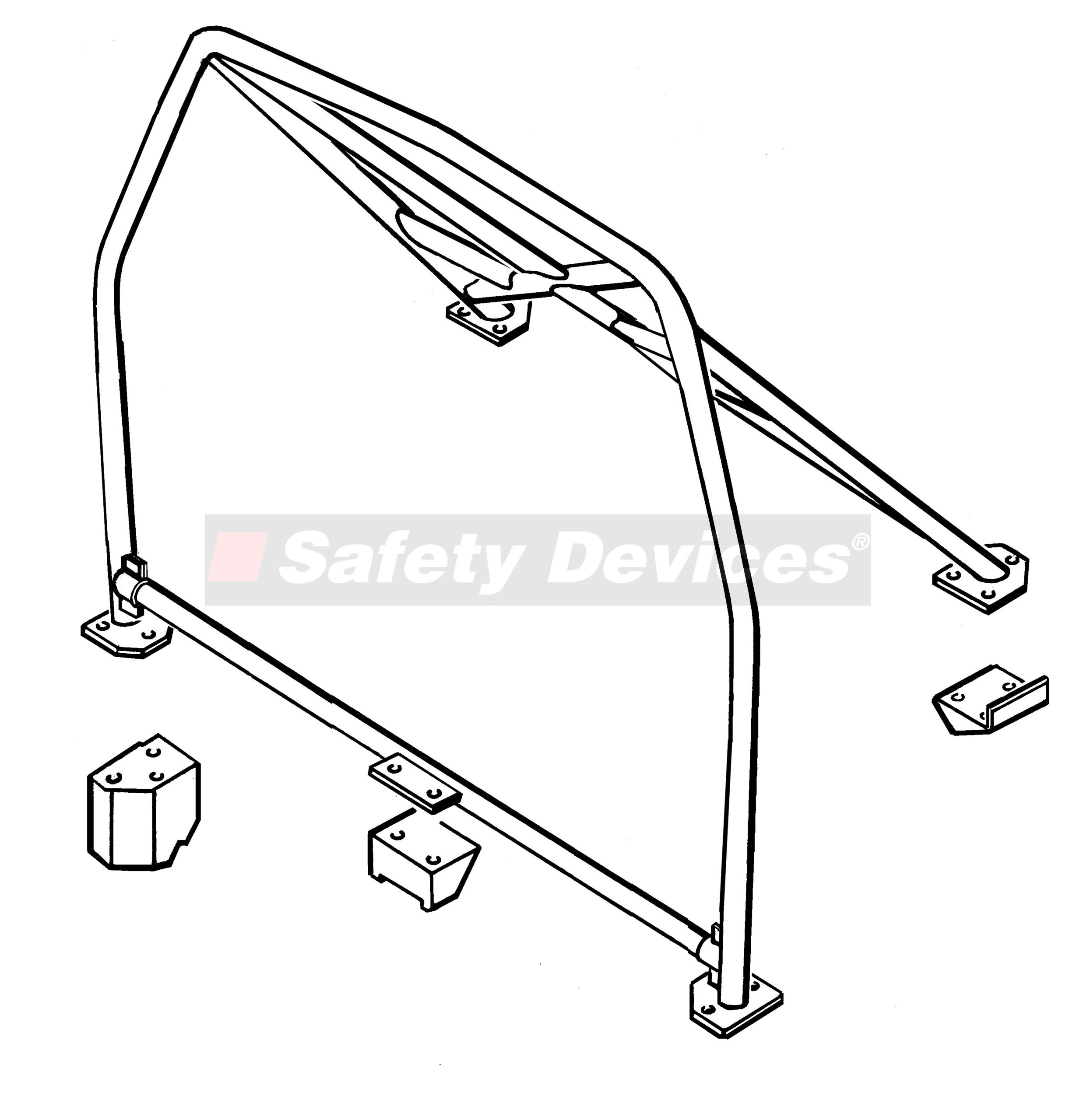6 point bolt-in cage. Clears trim and dashboard. Single or cross door bars. Optional tunnel brace (mounting brackets already on B Hoop) and front strut brace.