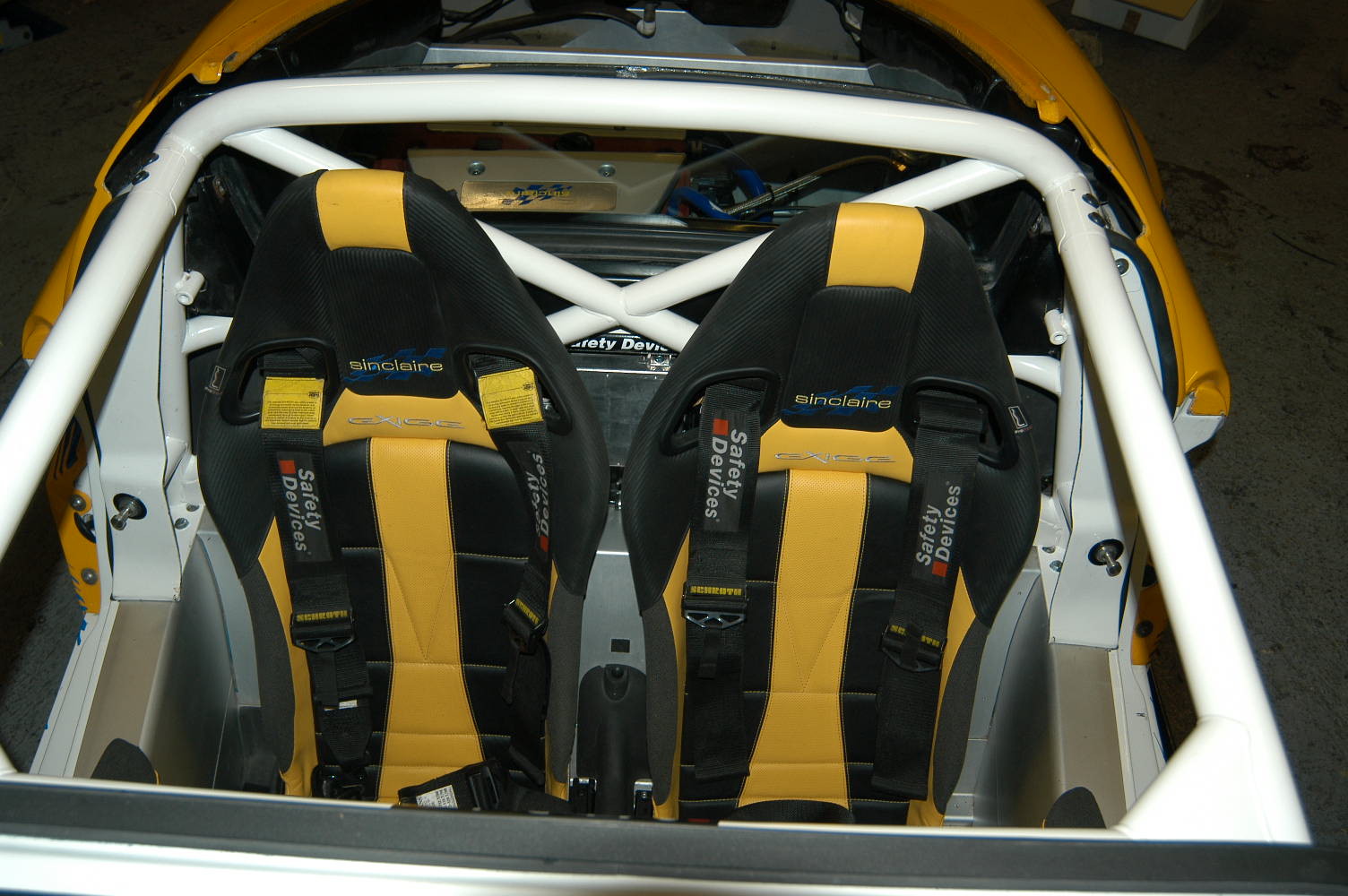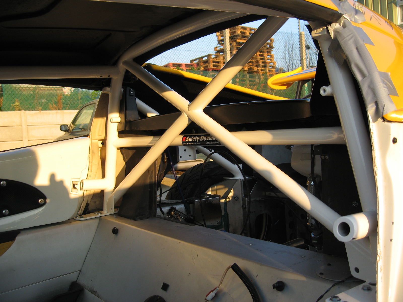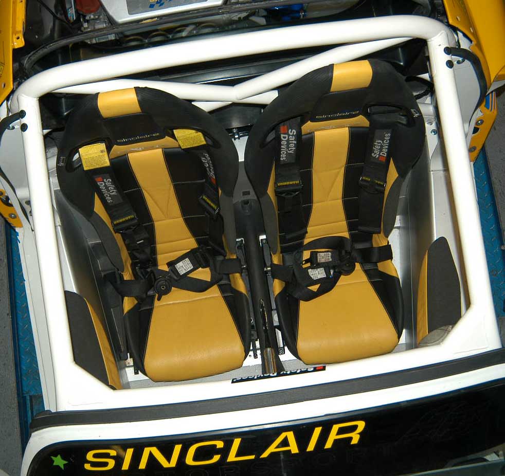 6 point bolt-in cage. Rear cage replaces original roll hoop. Rear cage has cross diagonal and harness bar. Existing seat belt arrangement can be retained. Front cage mounts through dash. Trim and body work modifications required.