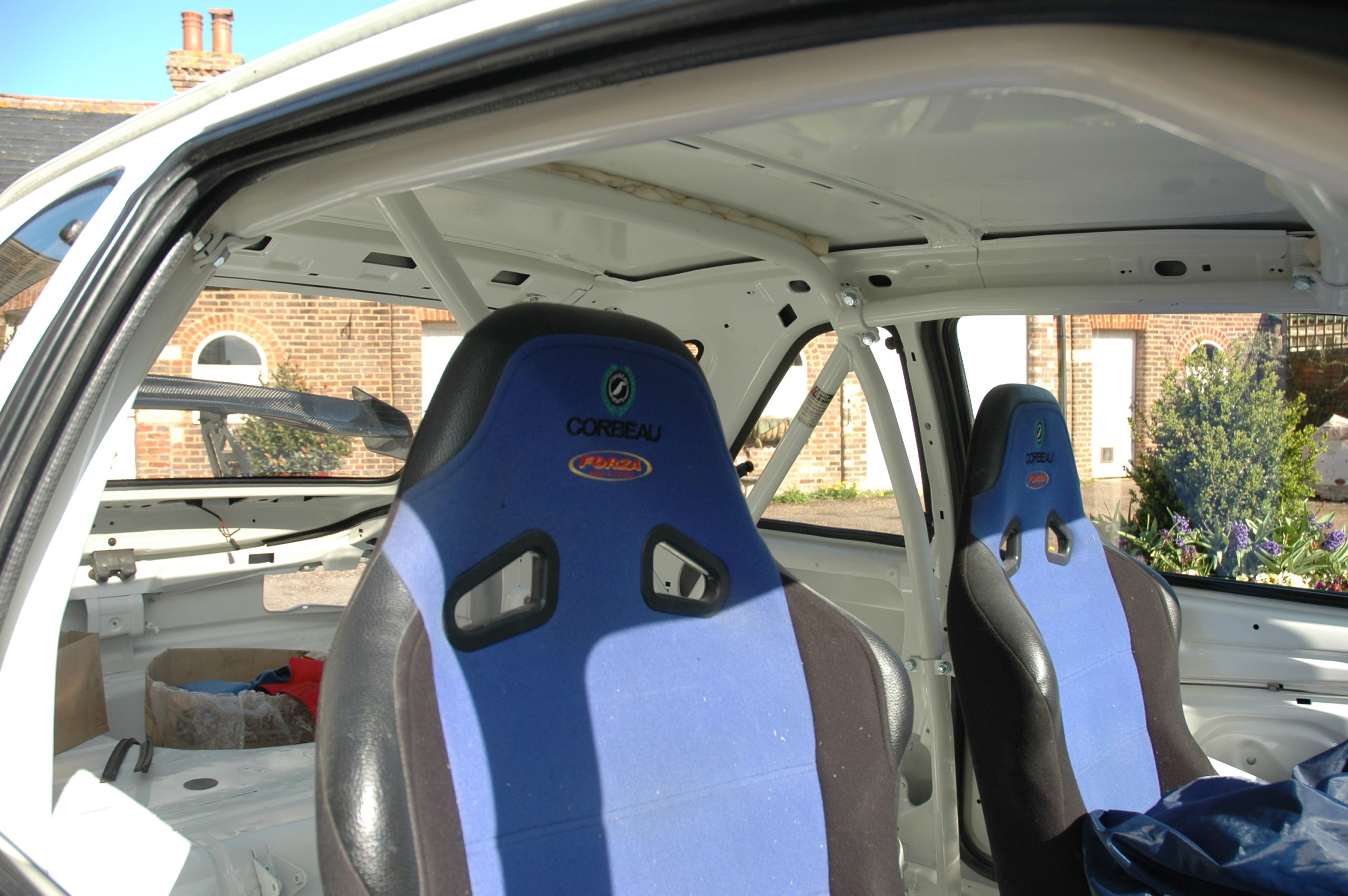 6 point bolt-in cage. Clears normal trim and dashboard.