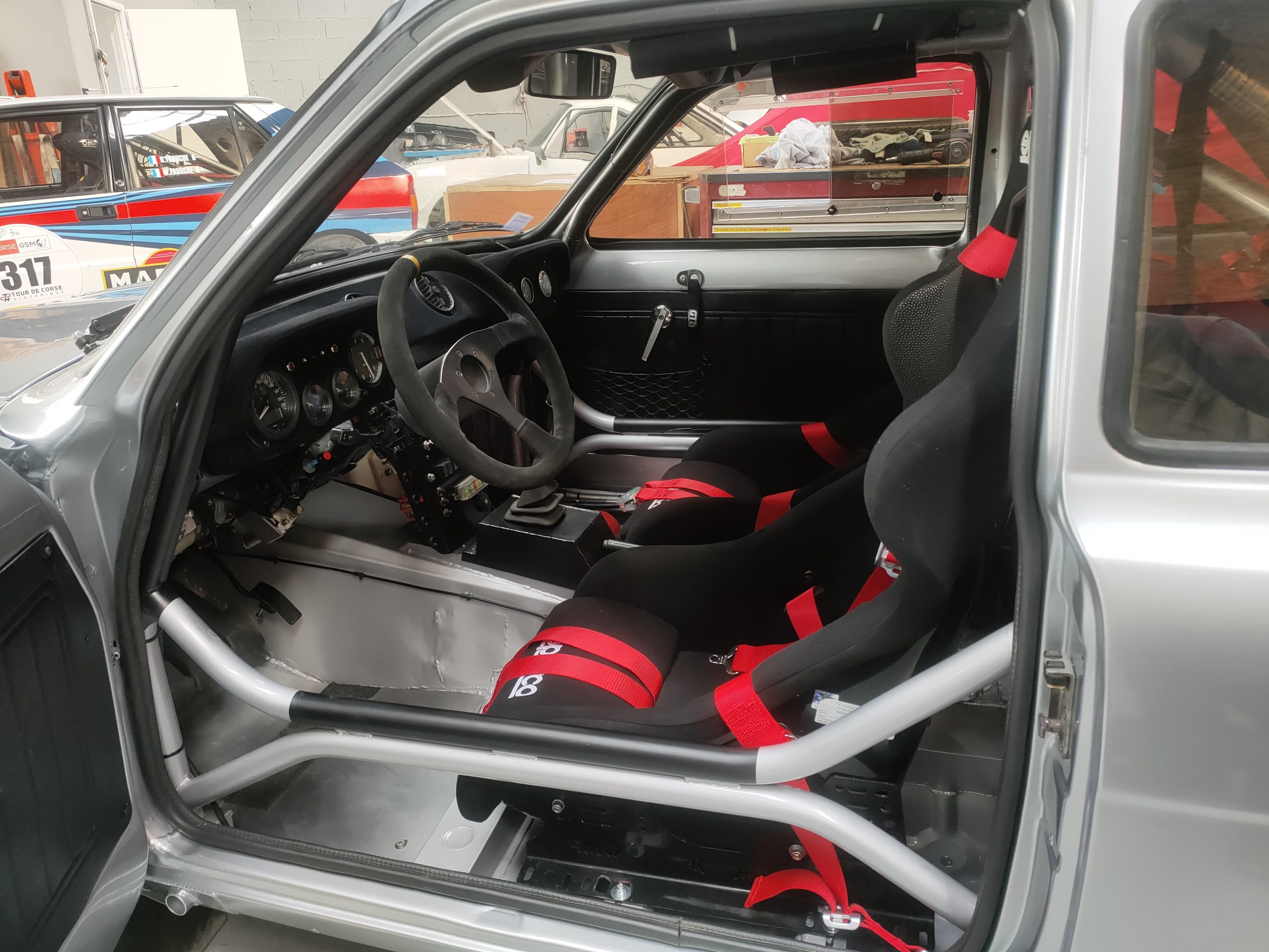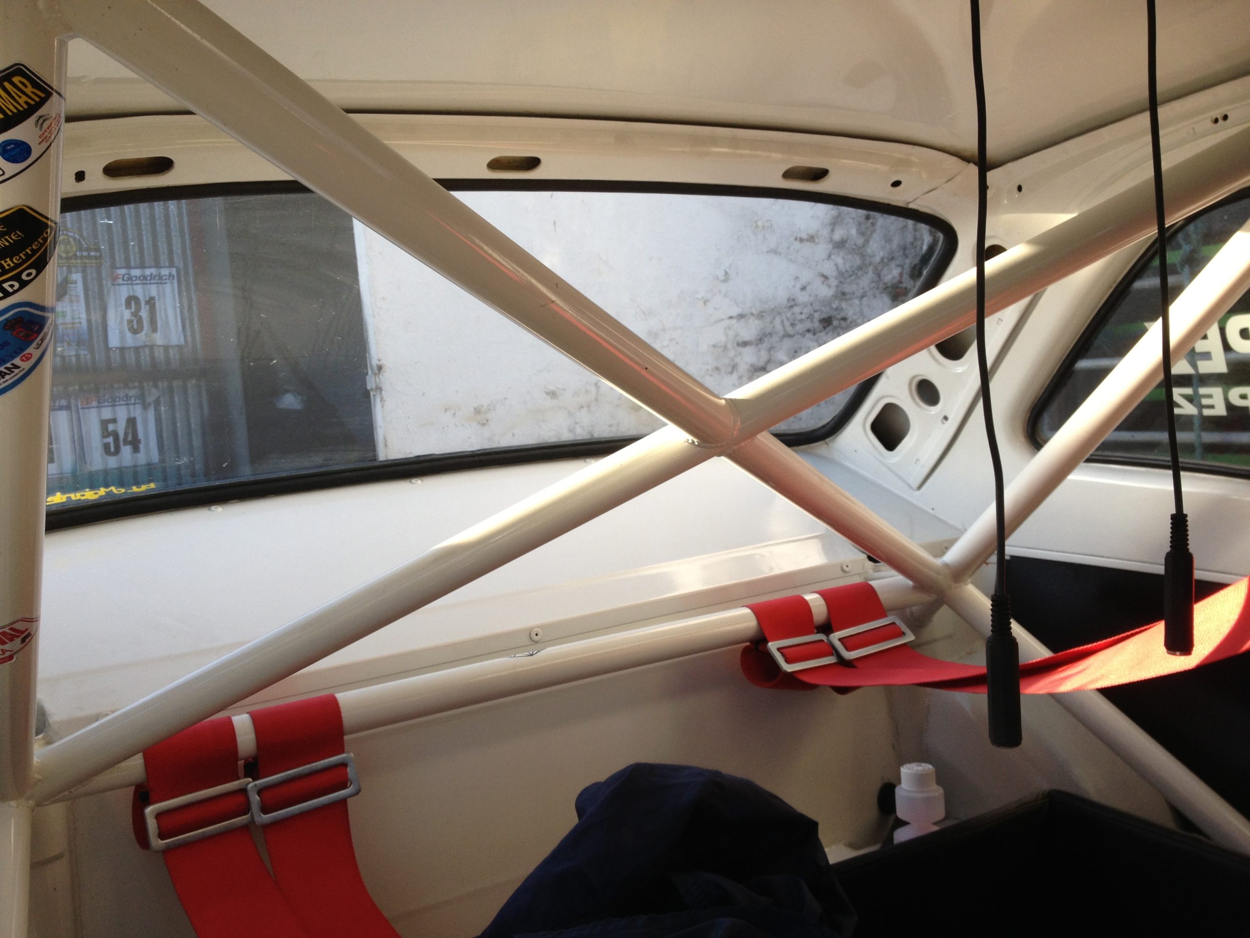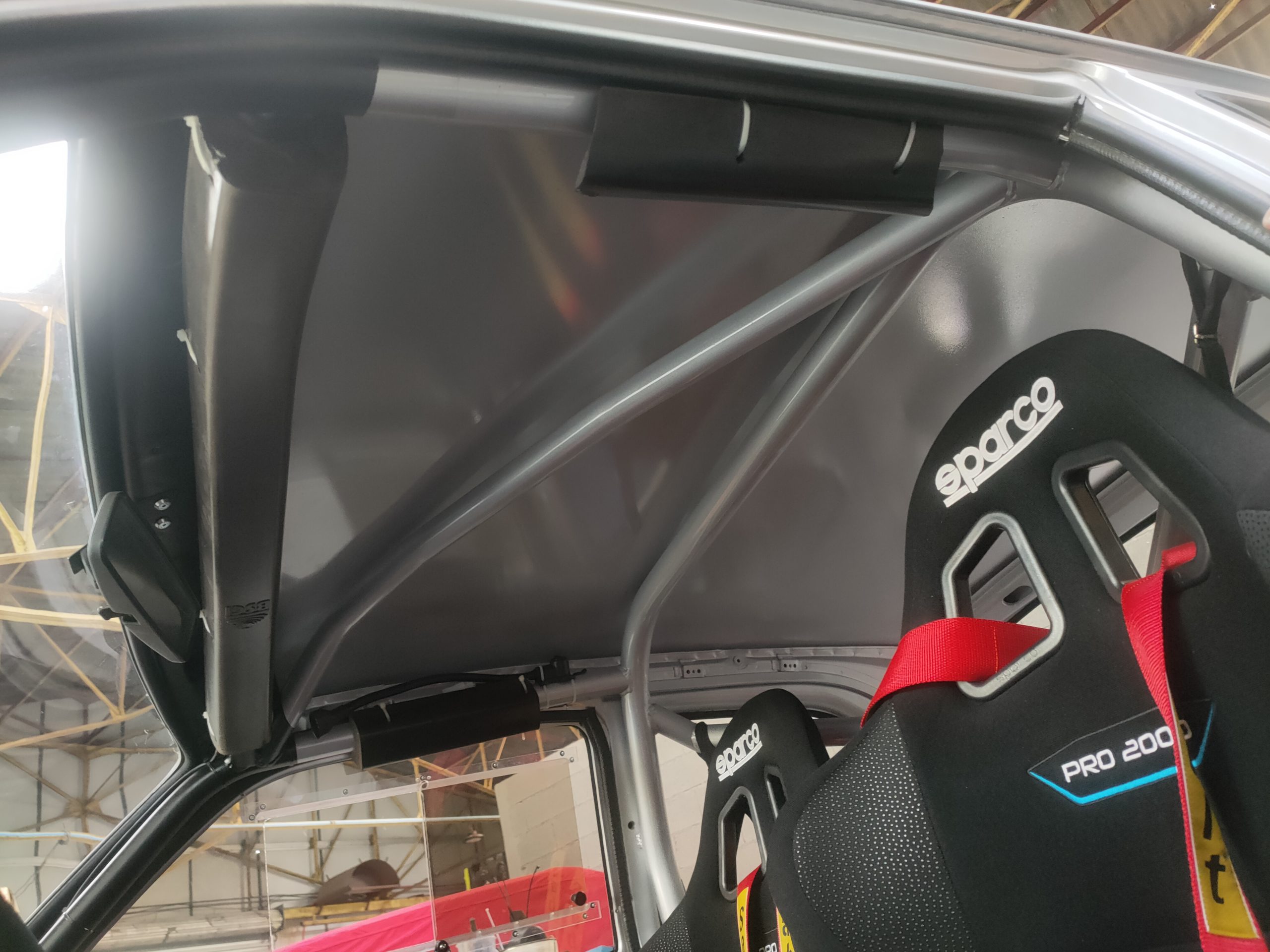 CDS full weld-in cage with cross door bars, cross diagonal in backstays, single roof diagonal, lower backstays, front triangulation, harness bars, tunnel brace, rear strut brace.