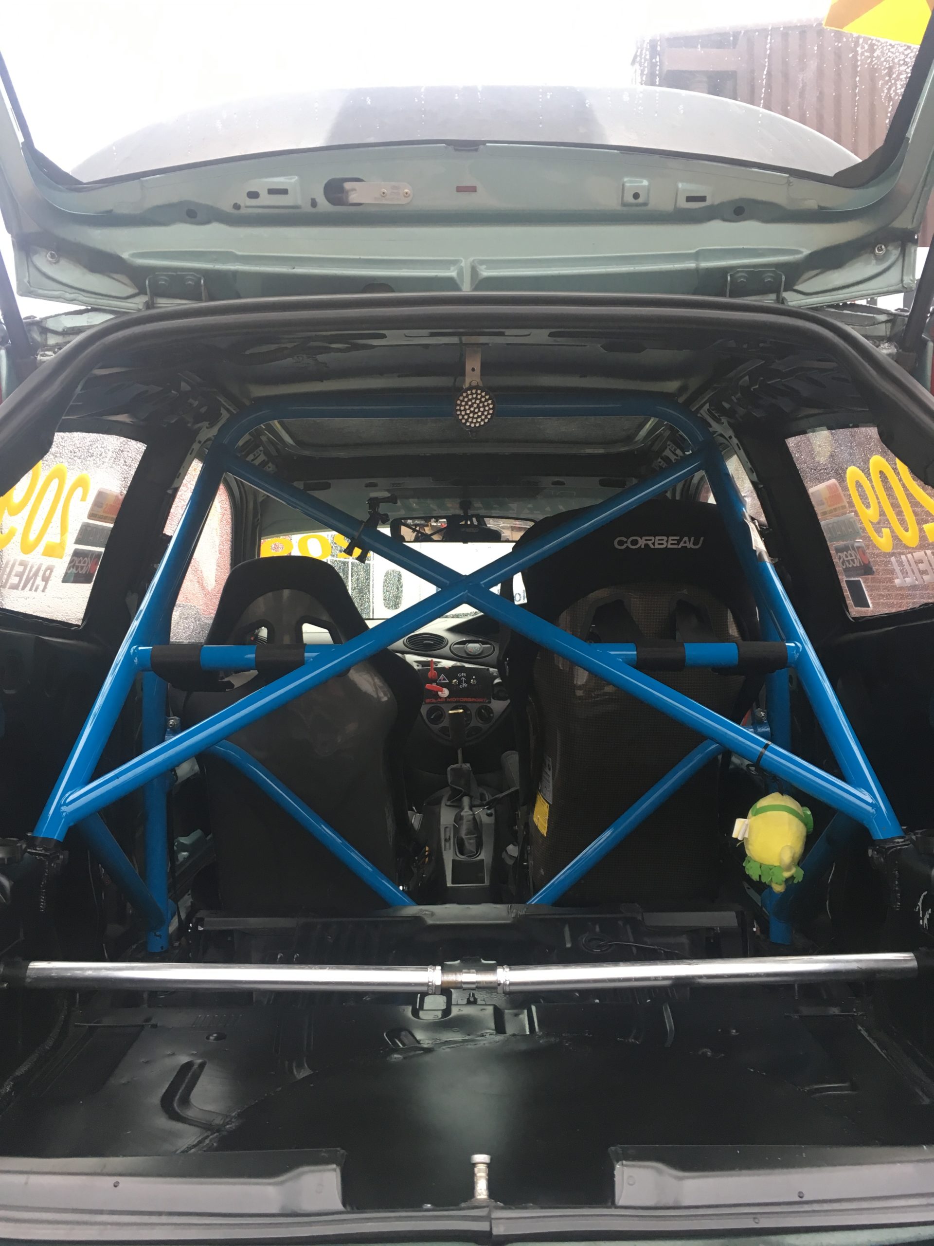 14 point bolt-in cage. Clears most trim and dashboard. Minor trim modifications required around backstays. Rear seat has to be folded flat. Includes tunnel brace and lower backstays as standard. Standard door cards cannot be used.