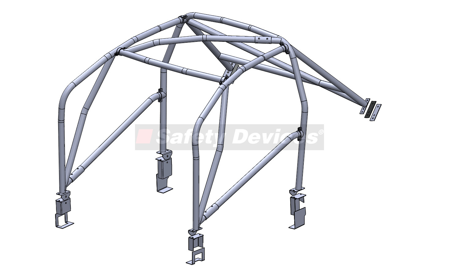 6 Point / Multipoint bolt in roll cage. For vehicles without interior trim. Front cage penetrates dashboard