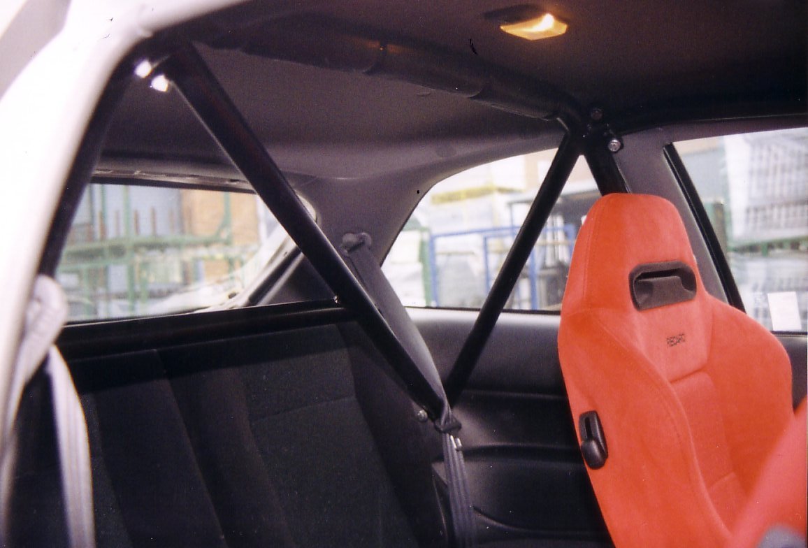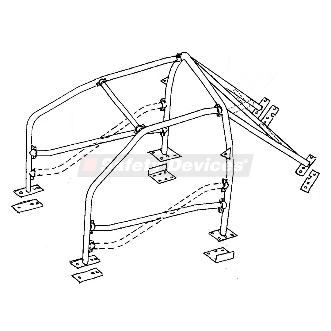 6 point bolt-in cage. Clears normal trim and dashboard. Mounts to the floor and rear wheel arches.