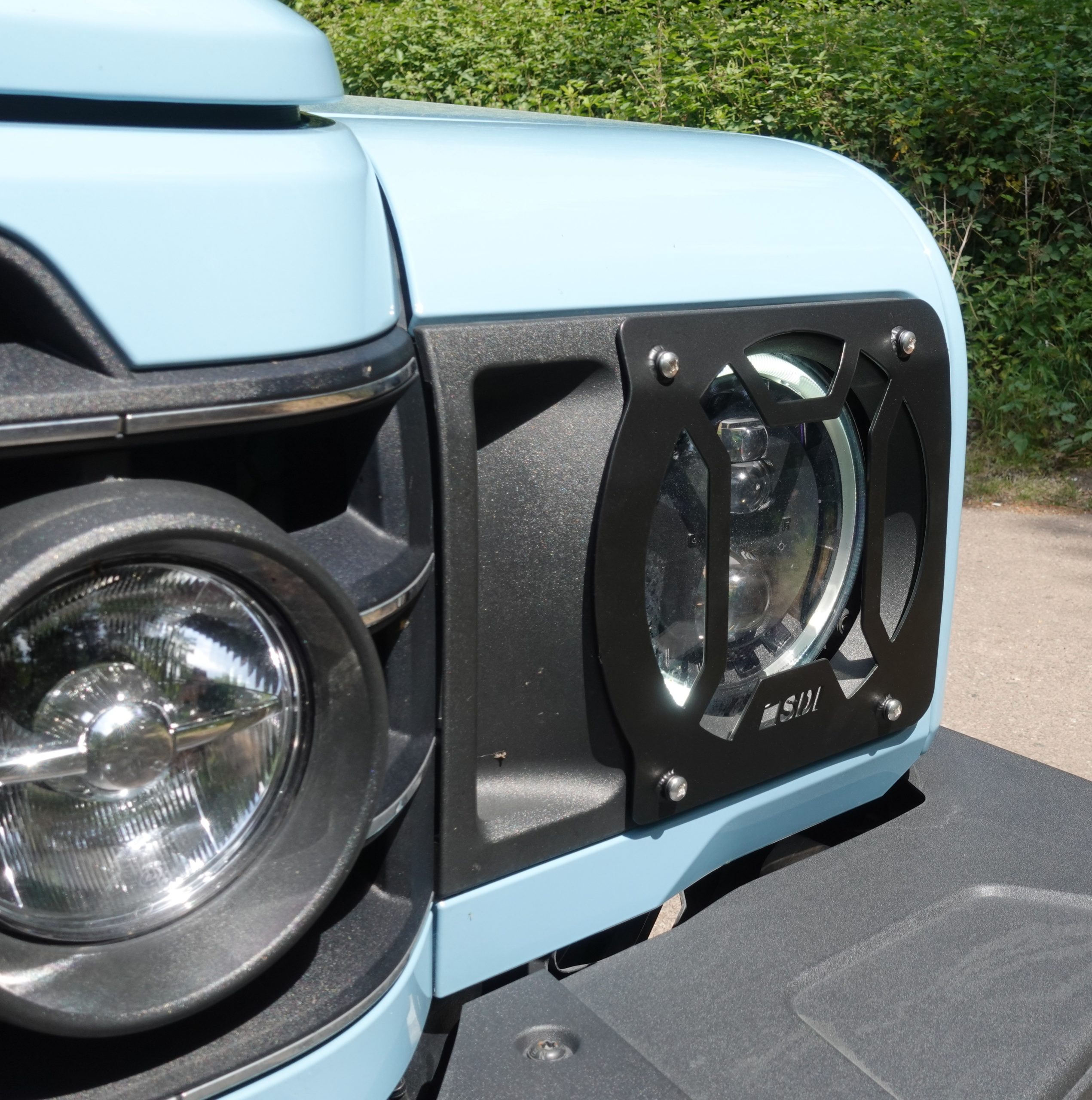 Front light guards that are fitted using OEM fixing locations on the vehicle.