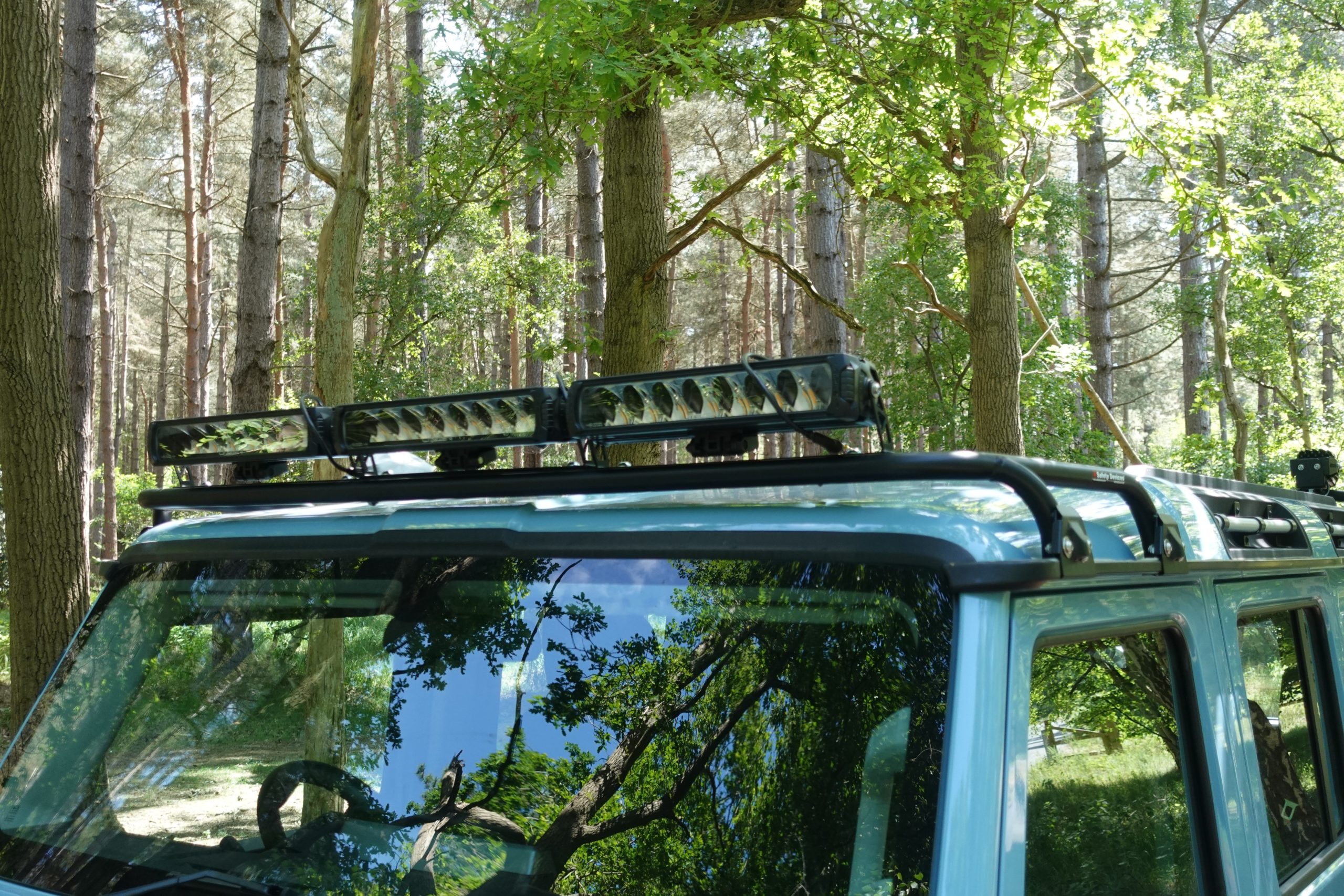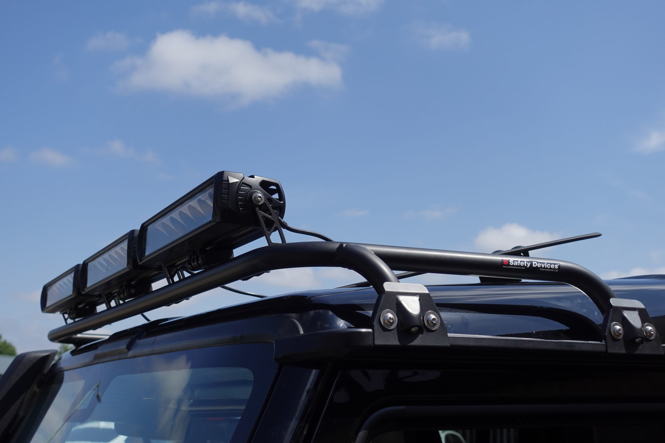 Front Light bar mounting to RAIN GUTTER with multiple brackets to mount various lights or other accessories.