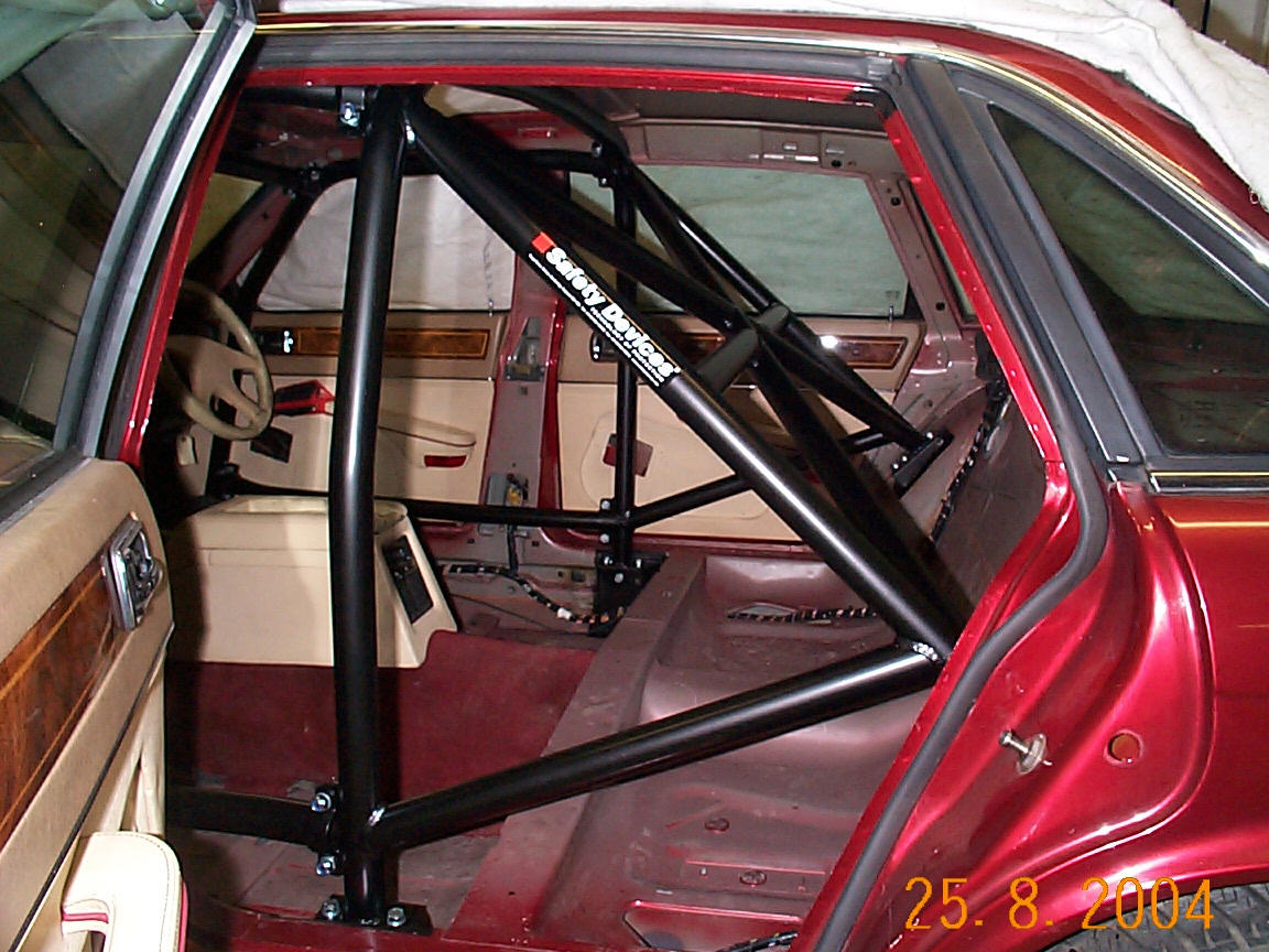 6 point bolt-in cage. Front cage clears dashboard. Rear cage has cross diagonal, harness bars and lower backstays. Single unique door bars.