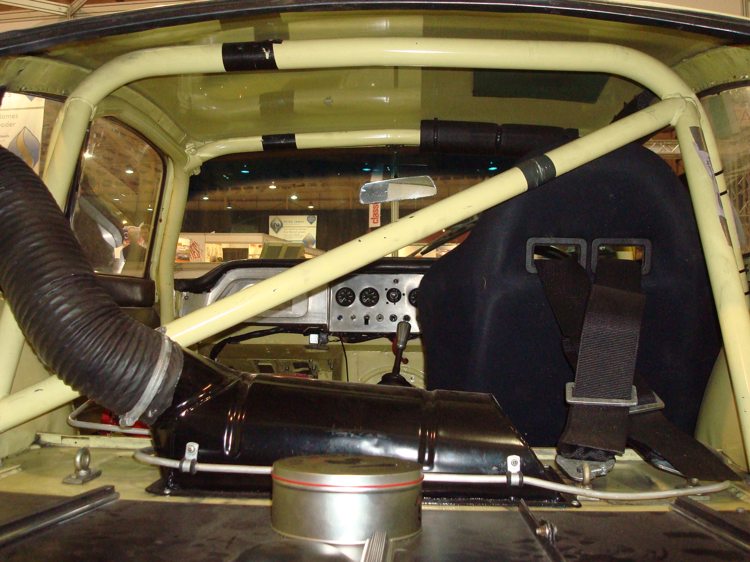 Multipoint point bolt-in cage. 45mm Main hoop. Diagonals in main hoop and back-stays. Front cage mounts to sills and A-posts.
