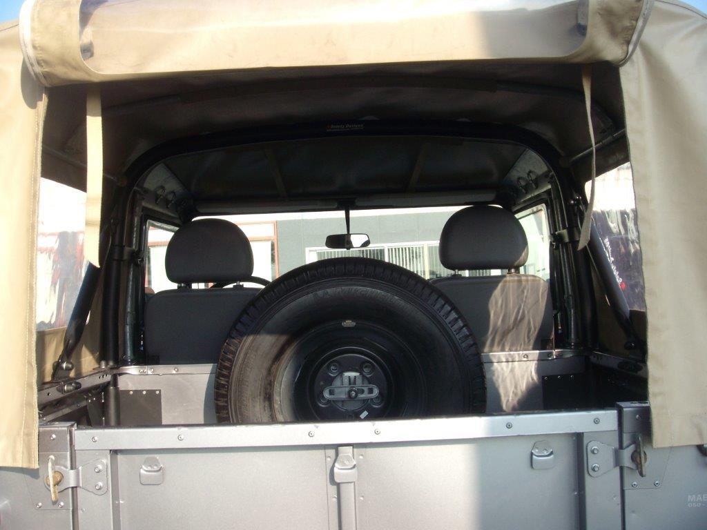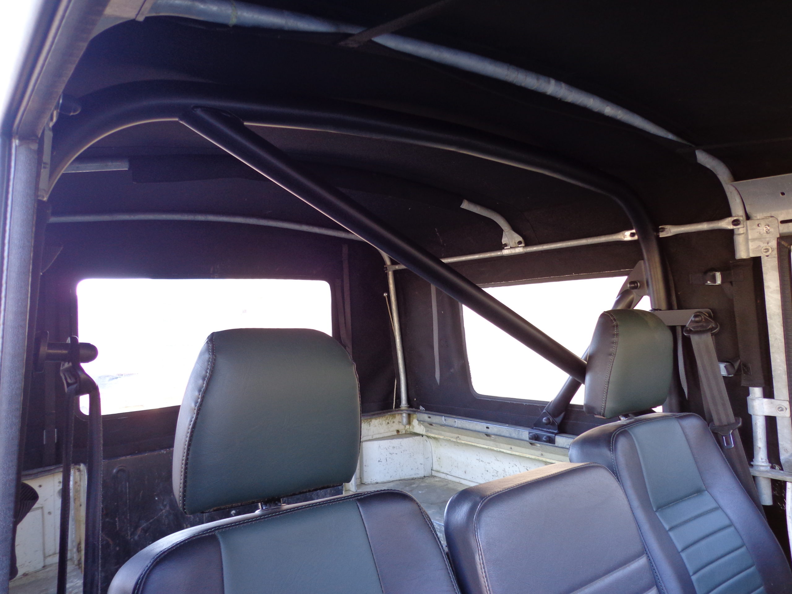 4 point bolt-in rear Military style 2″ hoop, available with or without diagonal. Mounts through cappings into corner brackets. Backstays go to waist rail cappings. Front seatbelt shoulder anchor points. Mounts at seatbelt points. May be used alone.