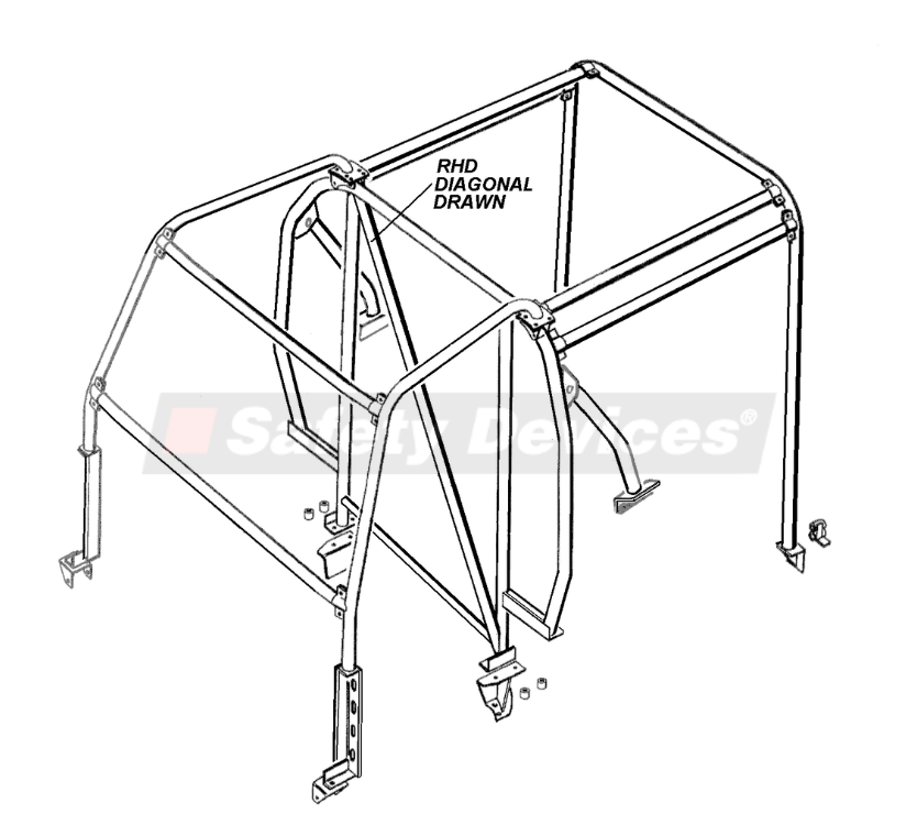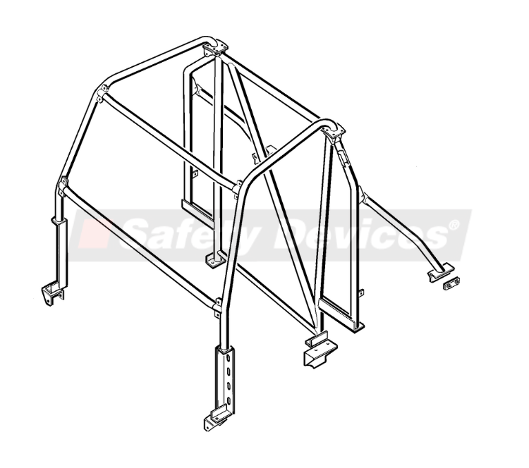 8 point multi-point external/internal bolt-in roll cage. External front legs, internal single hoop, short backstays fits with rear seats.