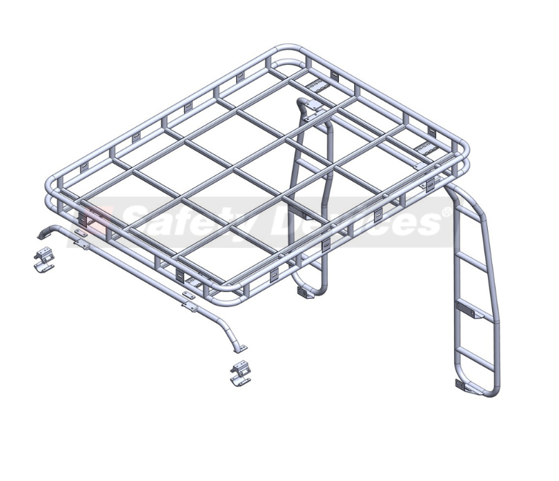 2.0m x 1.4m roof racks for mounting to RBL188 7SSS / RBL299 7SSS with various upper luggage rail options. Rack covers the full length of vehicle and supplied with double rear ladder which mounts to existing fixings in the rear crossmember and also to the capping either side of the rear door.