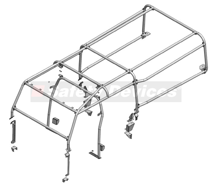 8 point bolt-in internal / external bolt in roll cage with internal B Hoop. For High Capacity Pickup with rear Tembo hard top.