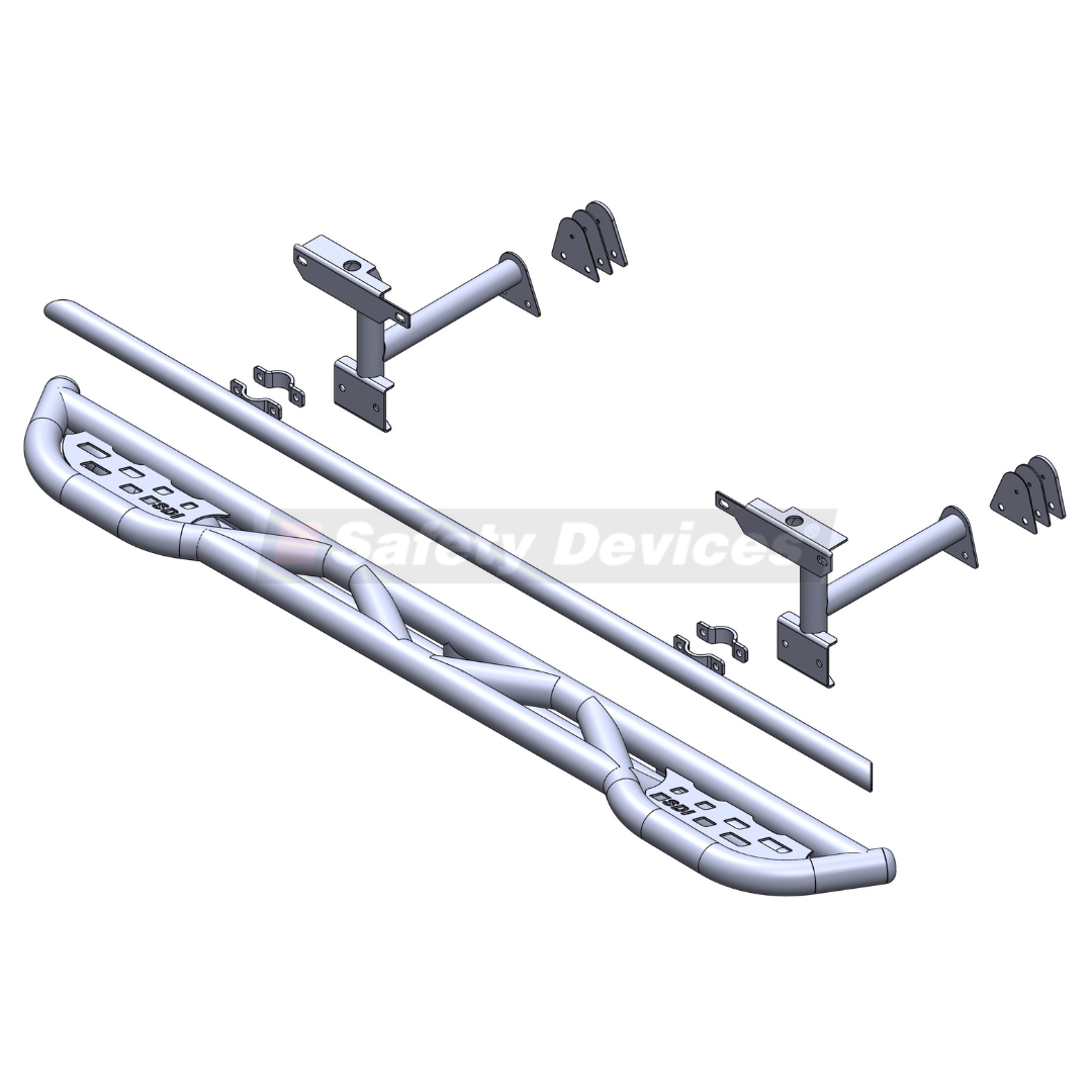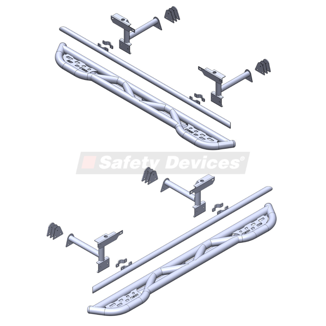 Frontier Tubular side step / slider set, mounts to sill and chassis. For standard width, 4 door vehicles.