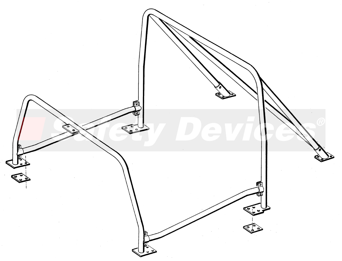 4 point rear cage only. Motorsport UK/FIA homologated with a minimum of single diagonal. Will fit soft top with minor modifications to hood sticks.