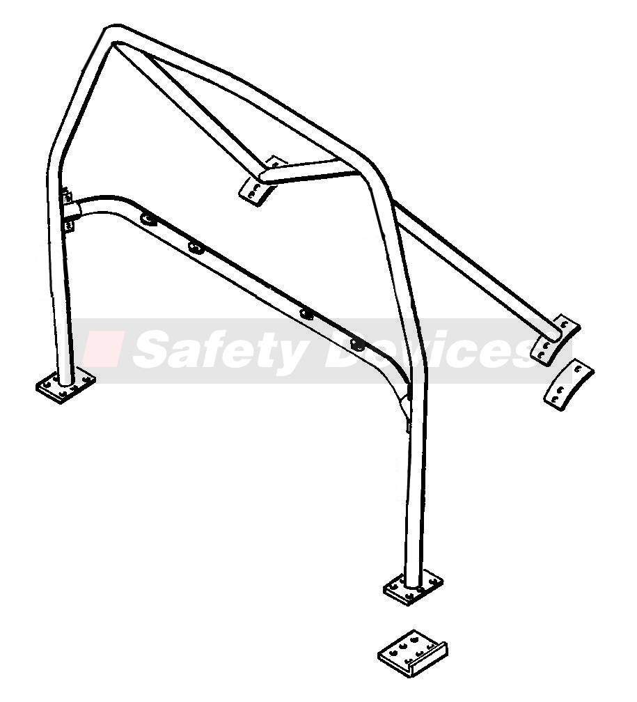6 point bolt-in cage. Clears all normal trim and dashboard. Harness bar in main hoop. Rear cage has single fixed diagonal.