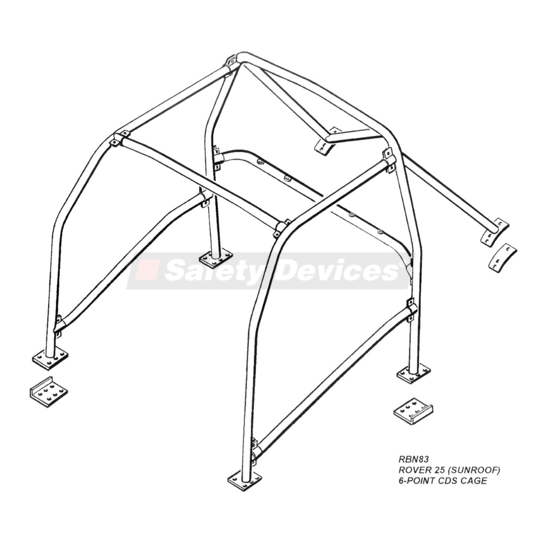 RBN094 5SXX Rear cage, cross diagonal, harness bars, tunnel brace, single roof diagonal, lower backstays, for cross door bars