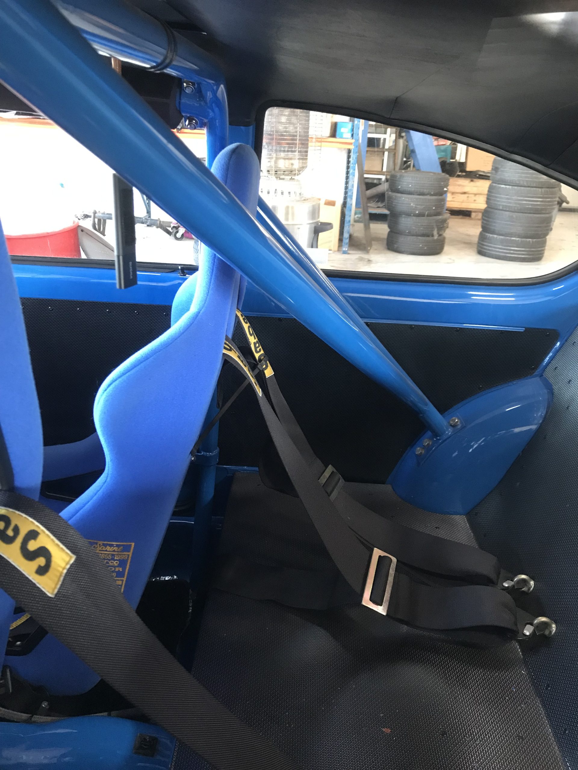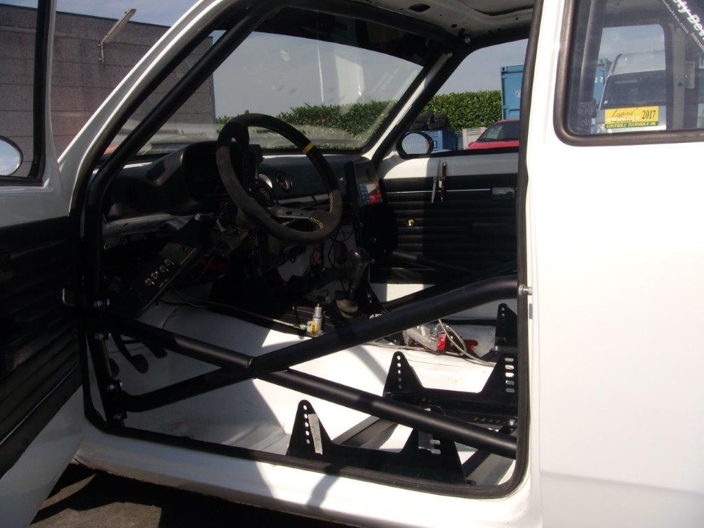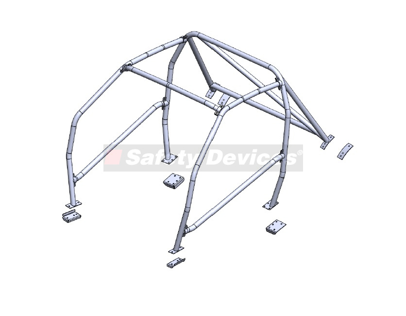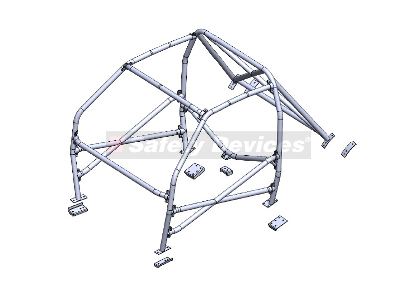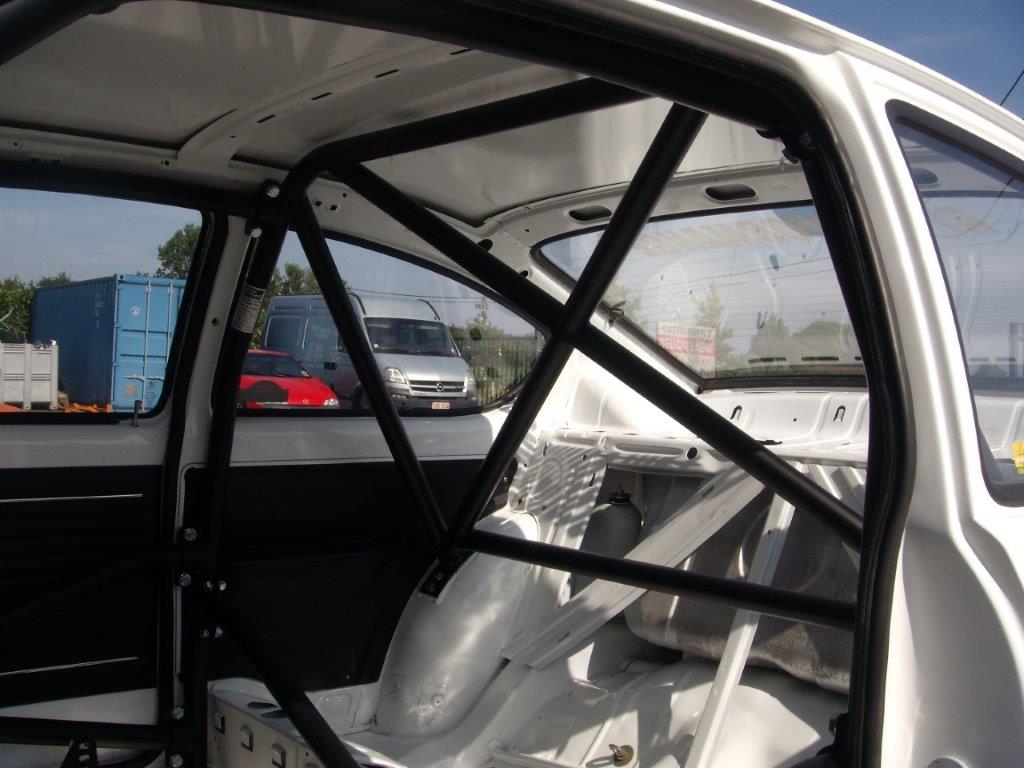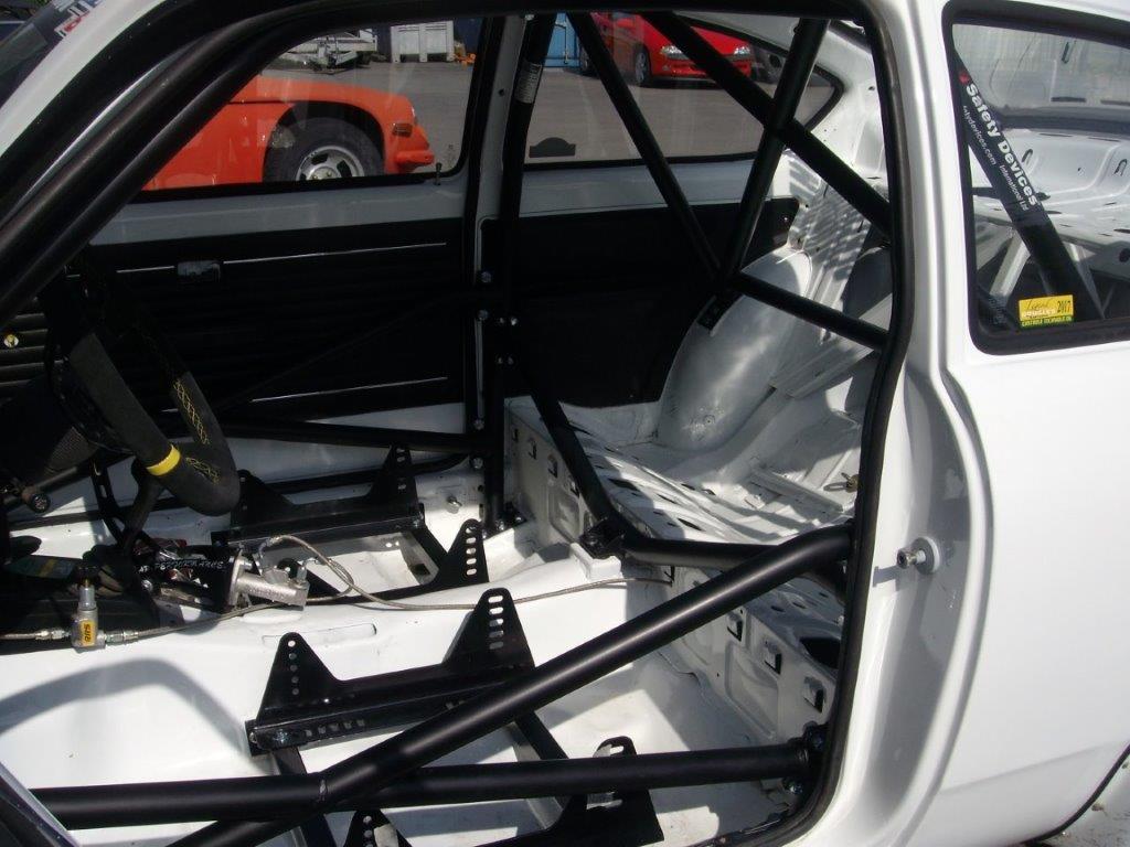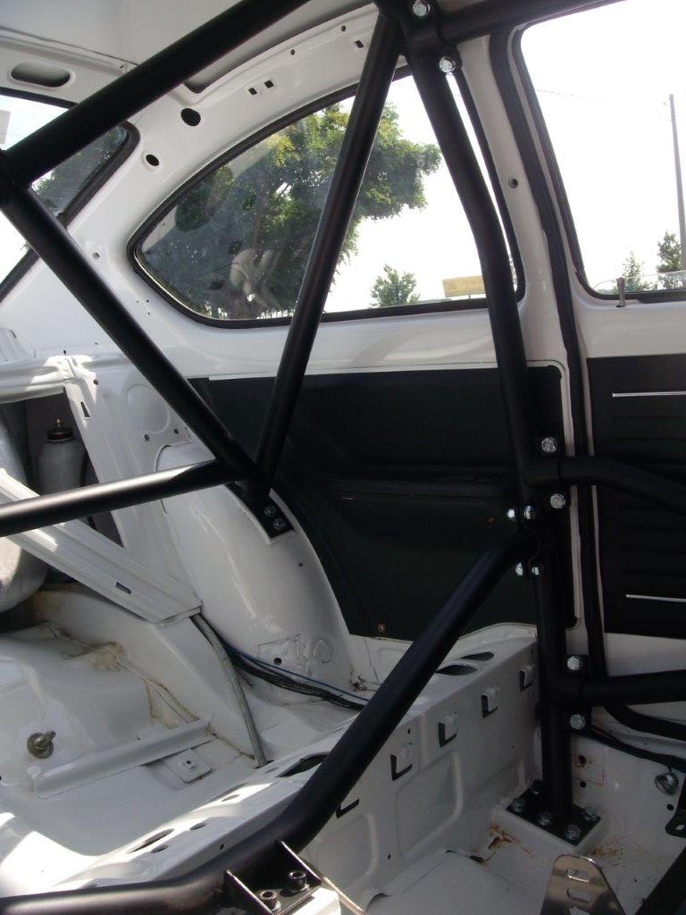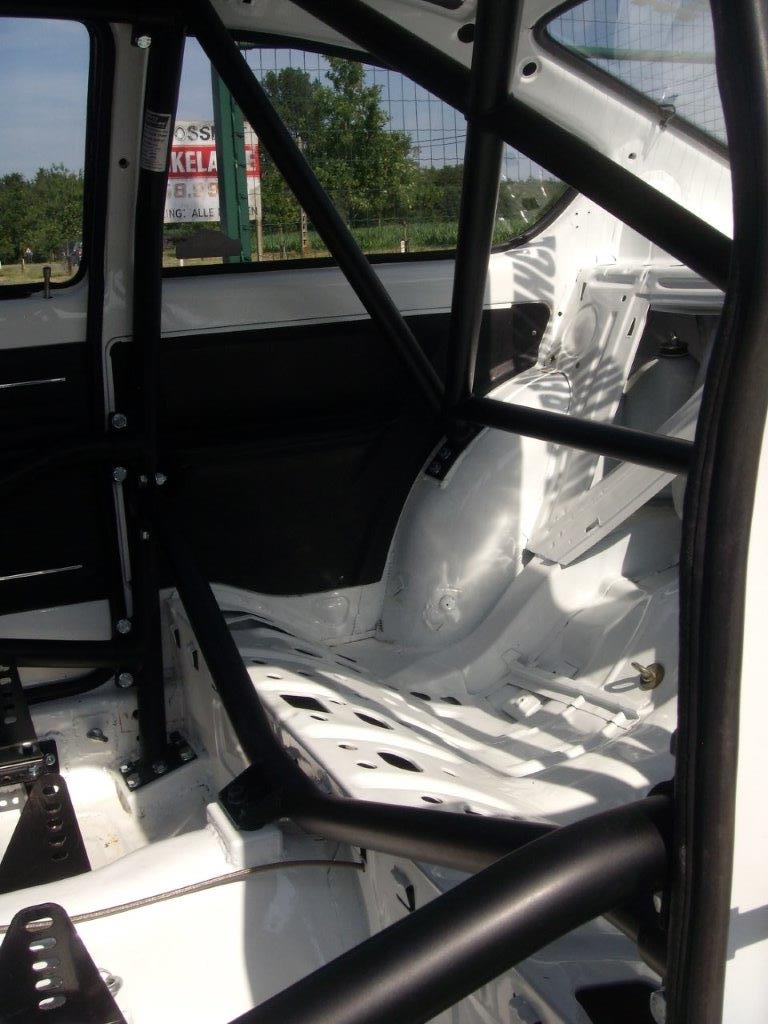 6-point bolt-in cage to clear normal trim and dashboard. Front cage mounts to floor. Rear cage mounts to floor and rear wheel arches. Universal door bars.