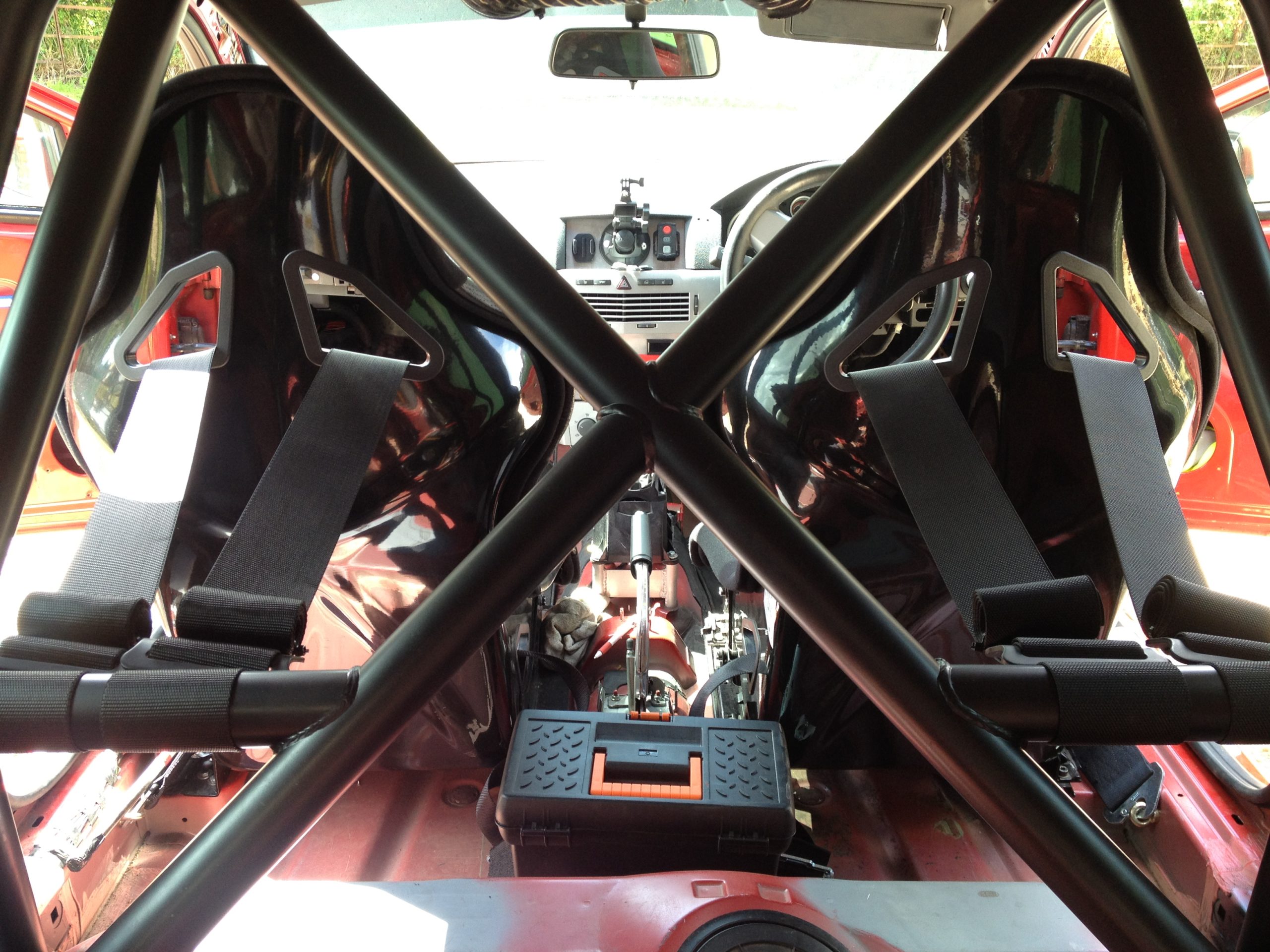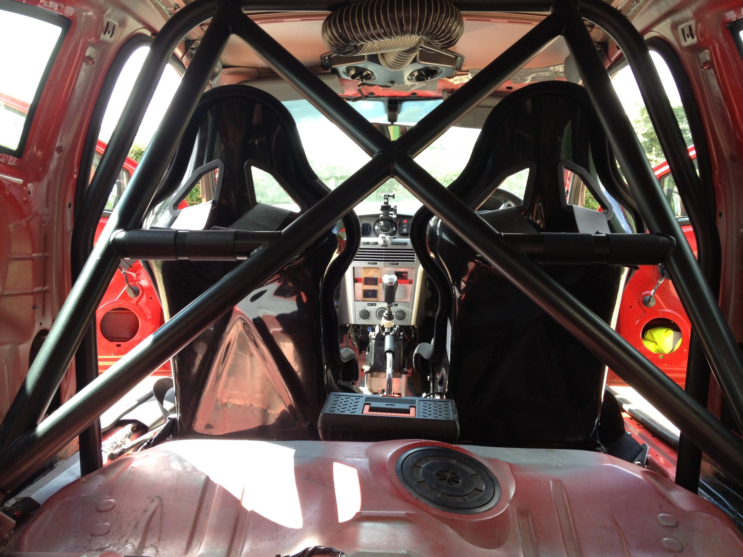 4 point bolt-in rear track day cage. Mounts to floor and rear wheel arches.