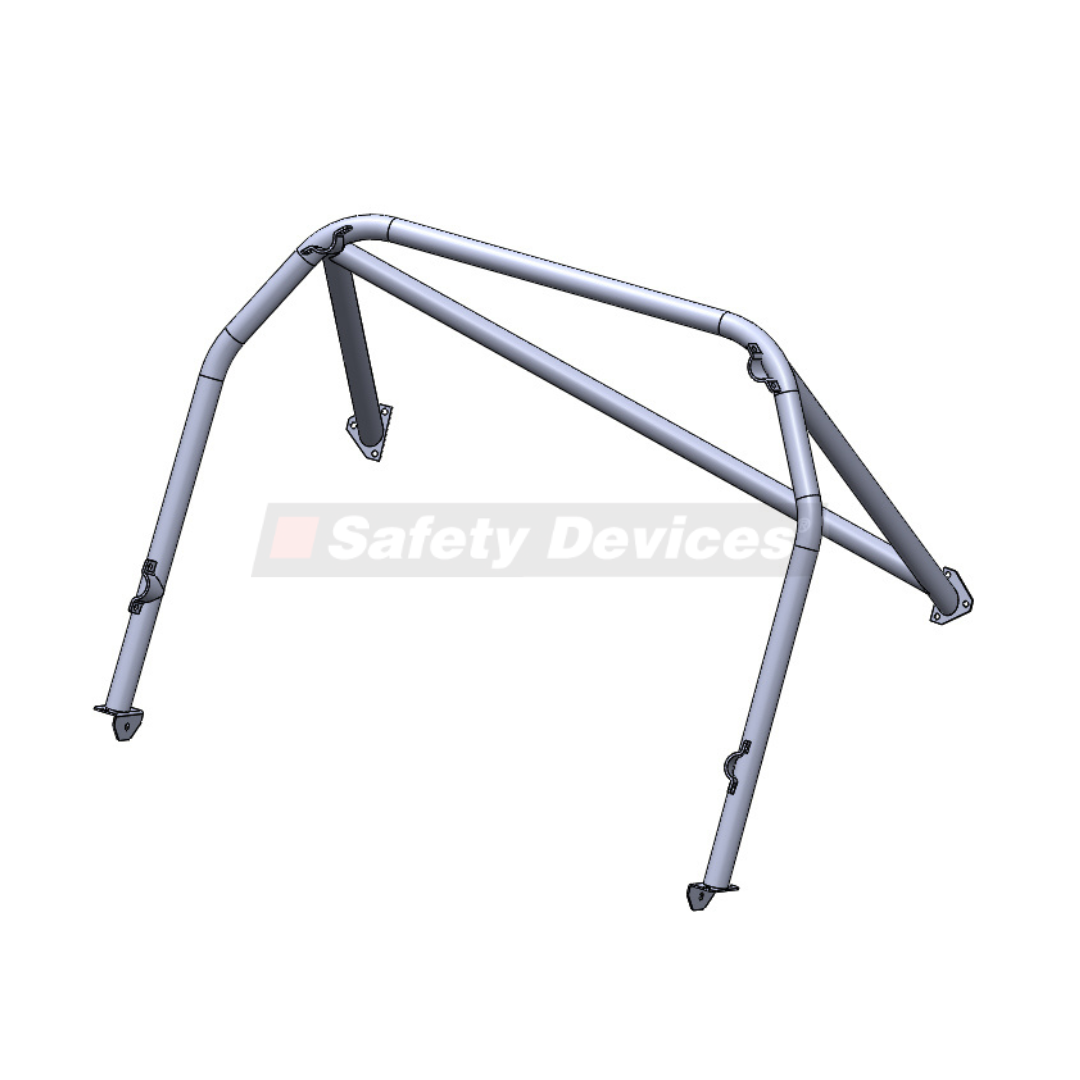 6 point bolt-in cage. Clears normal trim and dashboard. Mounts to the floor and rear wheel arches.