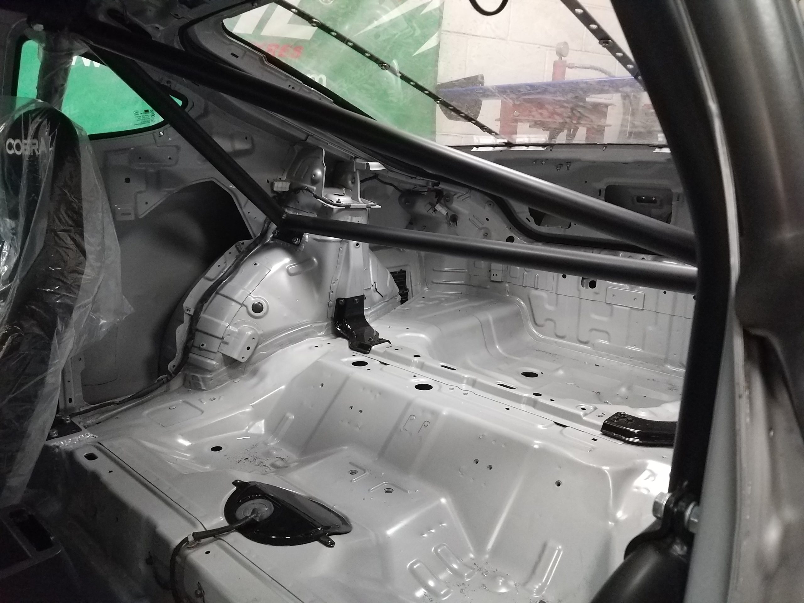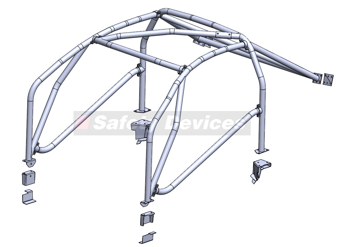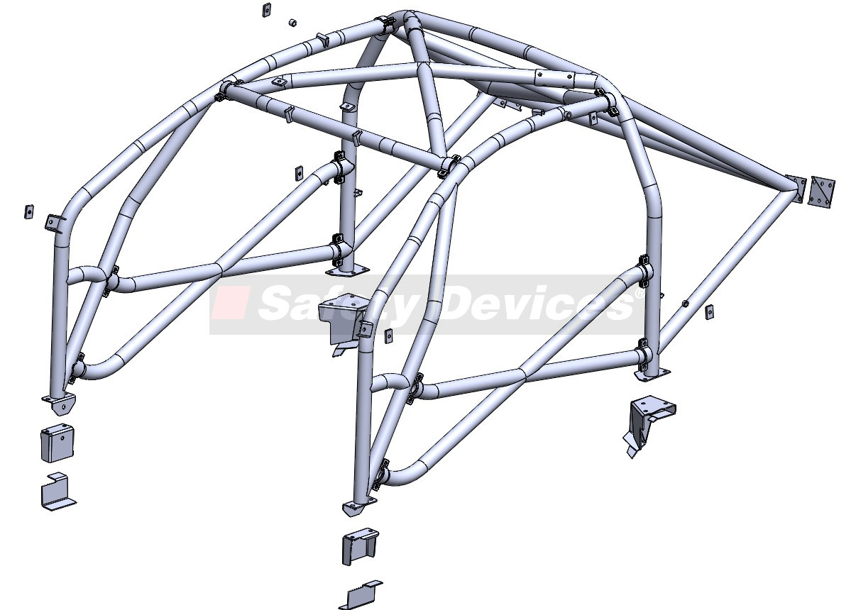 6 Point / Multipoint bolt in roll cage. For vehicles without interior trim. Front cage penetrates dashboard.