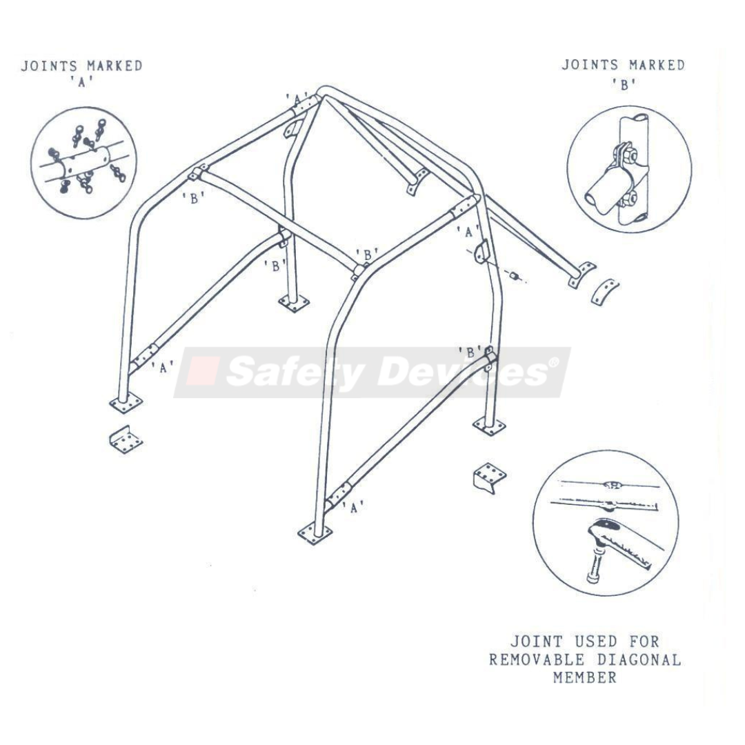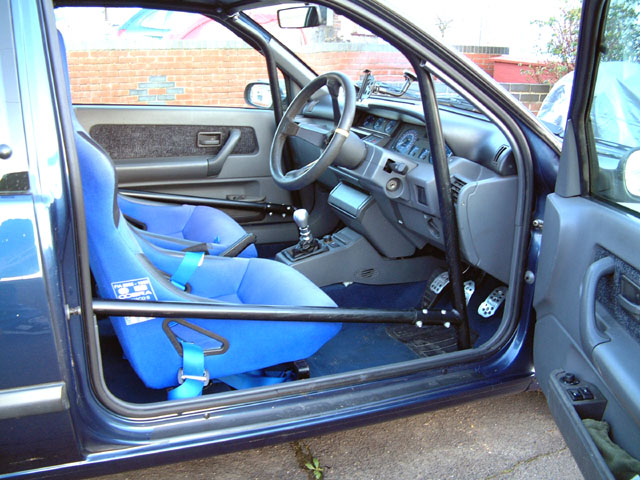 8-point bolt-in cage. Clears normal trim and dashboard. Mounts to the floor, B-post and rear wheel arches. Single unique door bars.