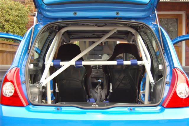 6 point bolt in track day cage that allows use of rear seats. Clears all standard Renault trims and dashboard. Mounts to the floor and rear wheel arches. All mounting plates, towers, bolts and fixings supplied.