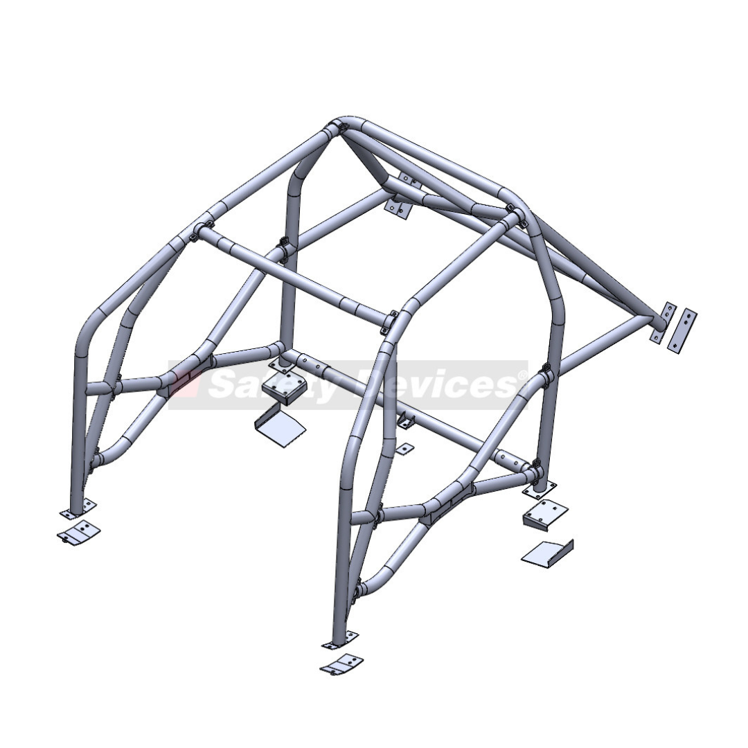 6 point bolt in roll cage. Designed for vehicles without interior trim. Front roll cage penetrates dashboard. Mounts to the floor and rear wheel arches. All mounting plates, towers, bolts and fixings supplied.