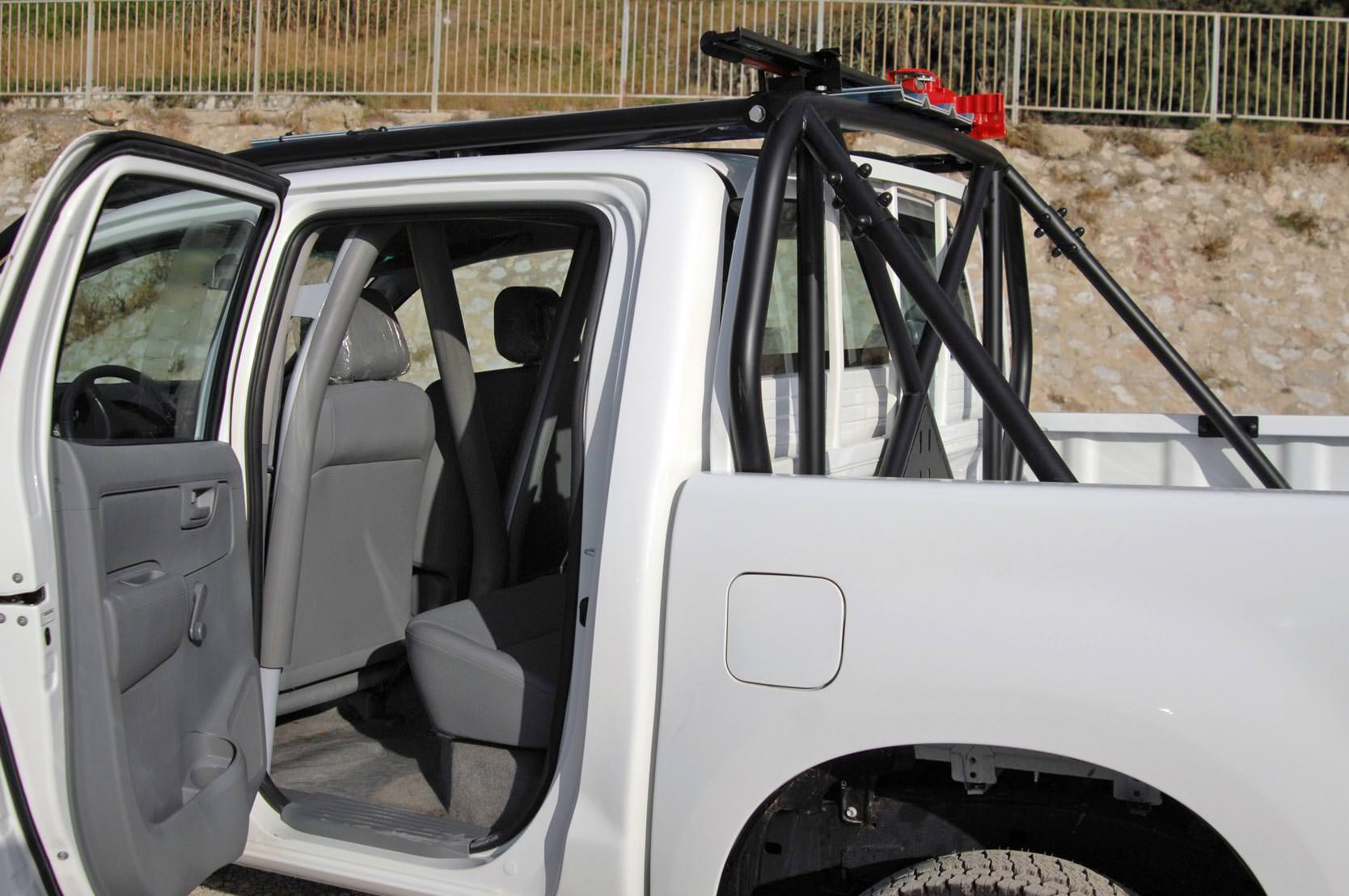 14 point multi-point bolt-in external/internal ROPS. Clears normal trim and dashboard. Includes spare wheel mounting on rear hoop and additional brackets for spot lights and beacons. X bracing in B hoop. This ROPS offers protection for all passengers and includes Safety Devices trademark flexible linkage system to minimise vehicle body fatigue. For standard vehicles without a sunroof. Not for use with curtain airbags.