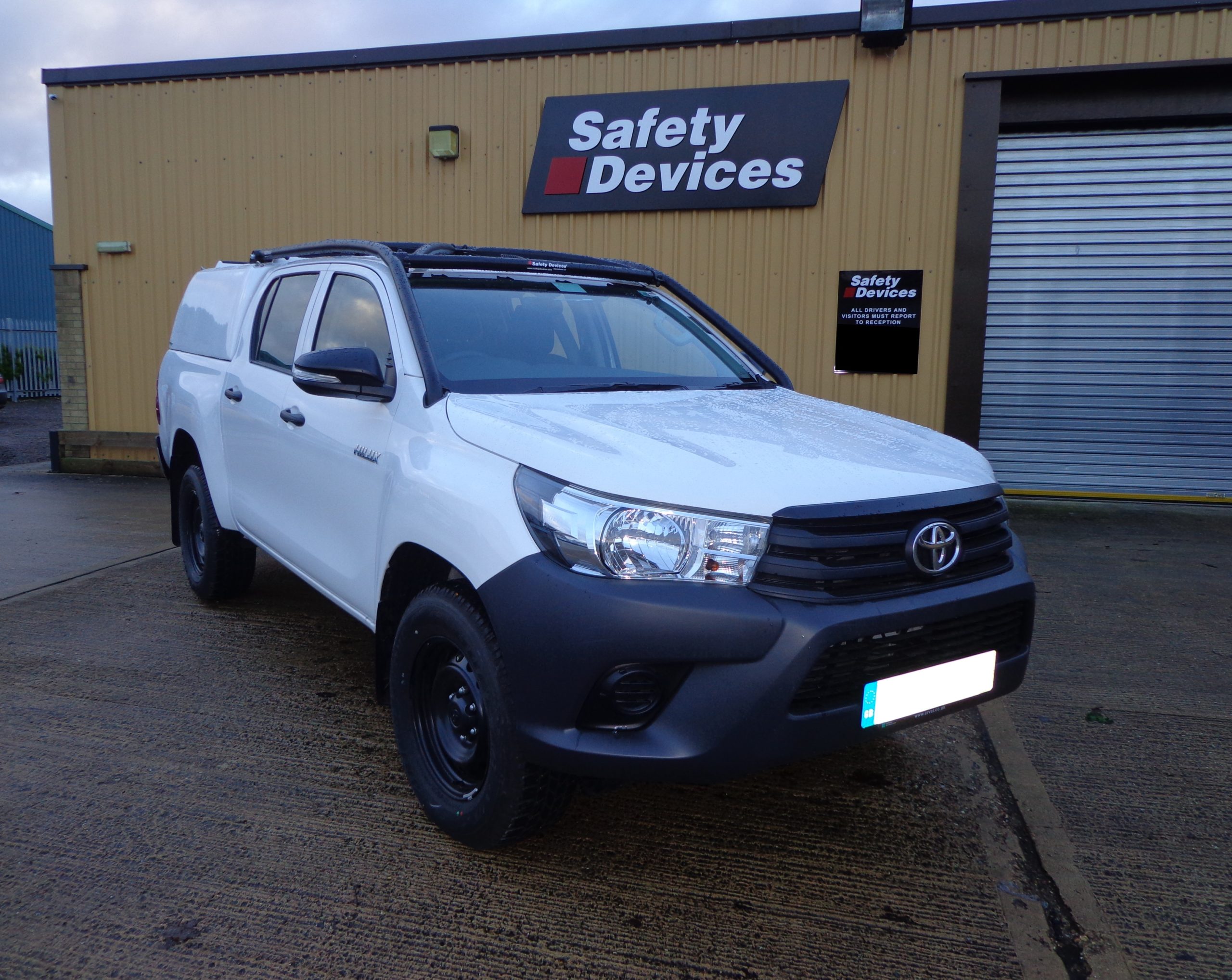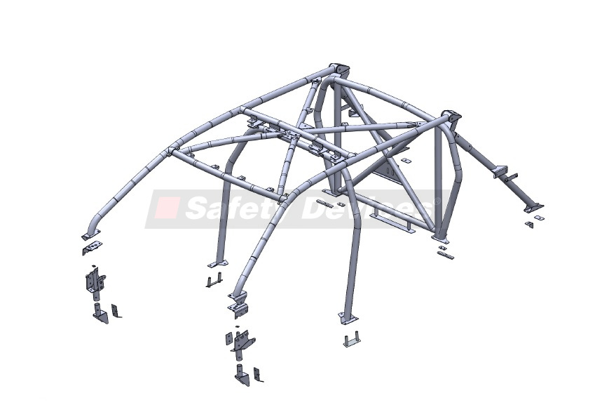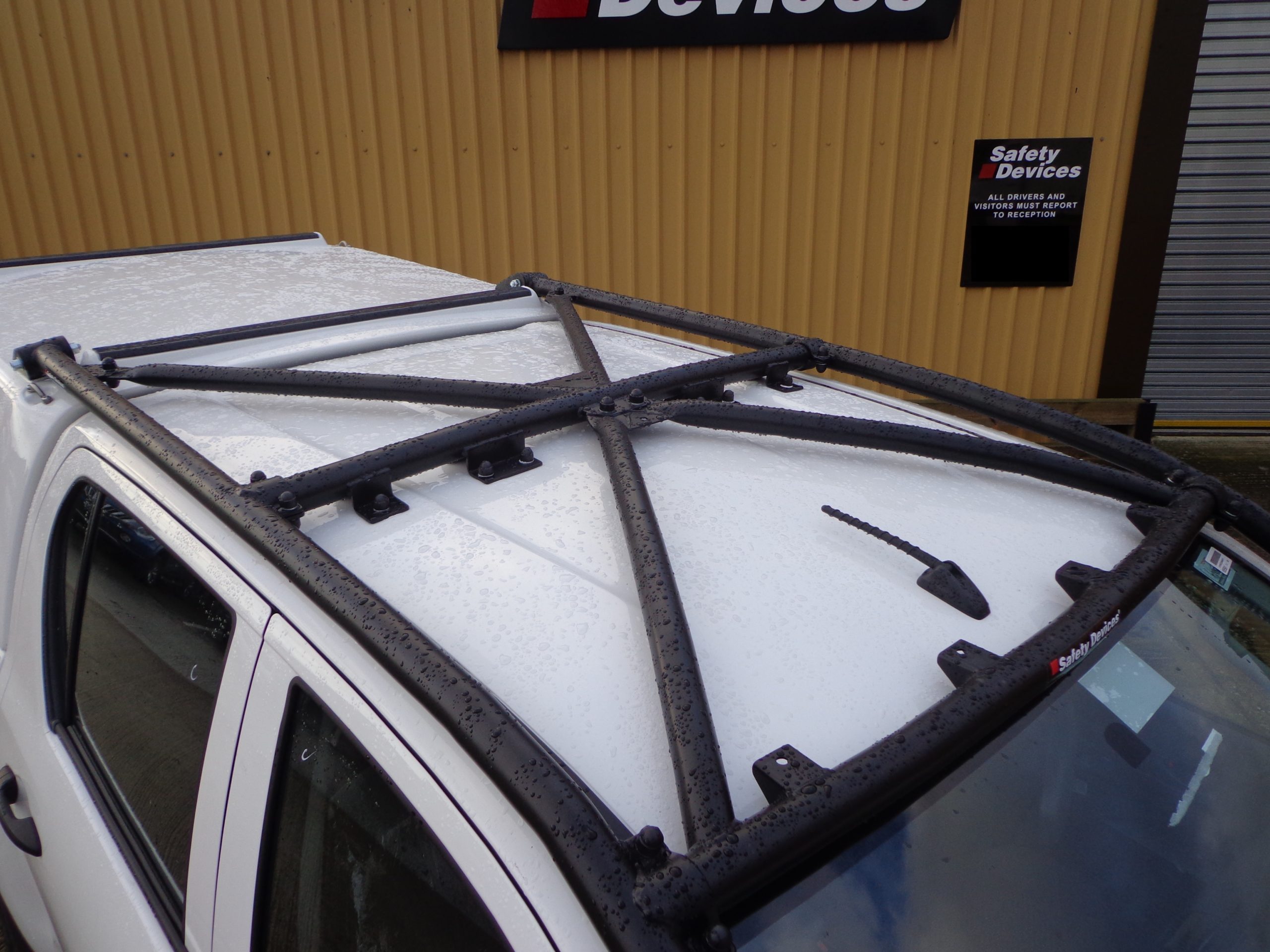 Multi-point bolt-in external/internal ROPS. Clears normal trim and dashboard. Includes spare wheel mounting on rear hoop and additional brackets for spot lights and beacons. No bracing in B hoop. This ROPS offers protection for all passengers and includes Safety Devices trademark flexible linkage system to minimise vehicle body fatigue. For standard vehicles without a sunroof. For use with curtain airbags.