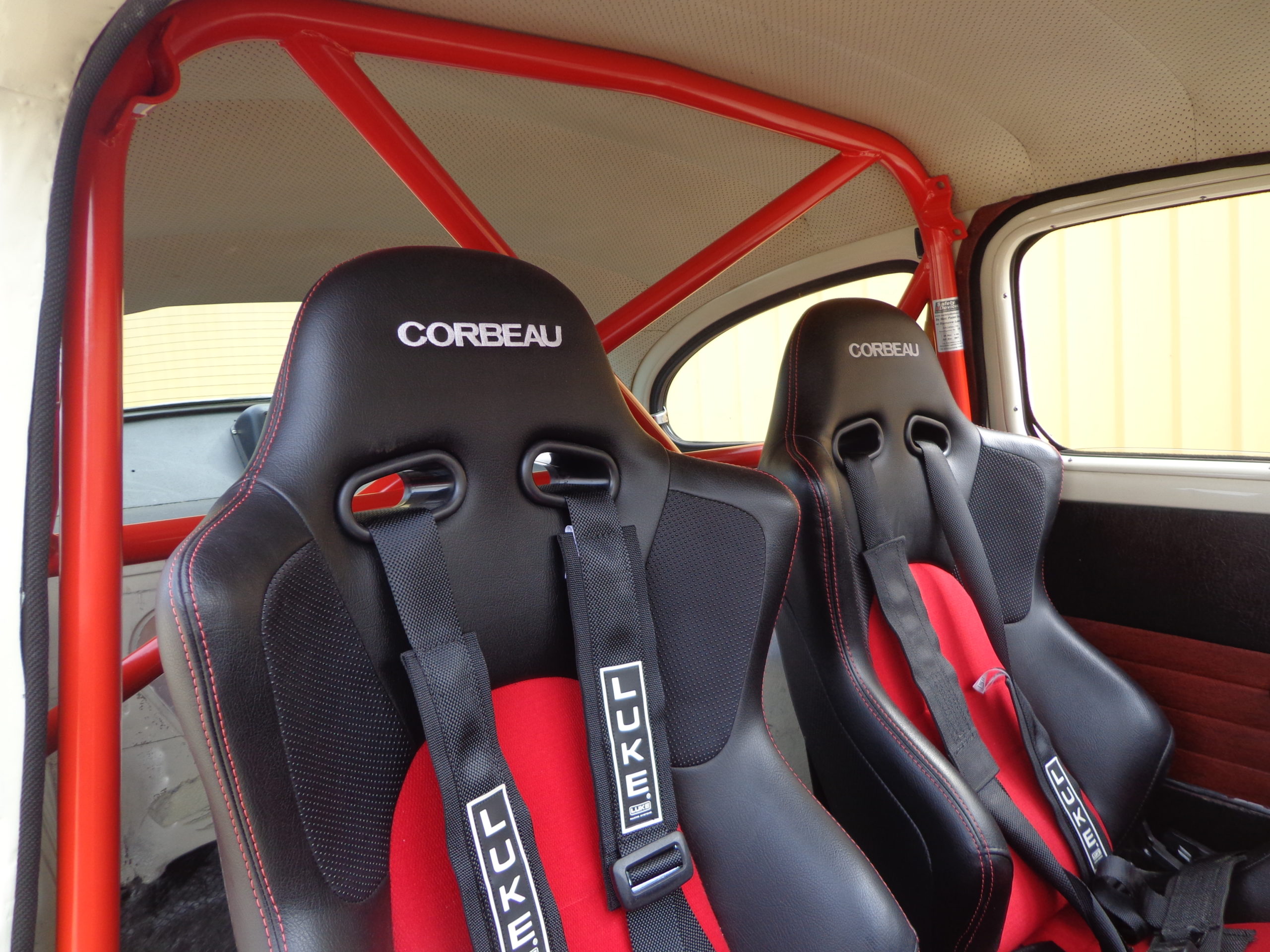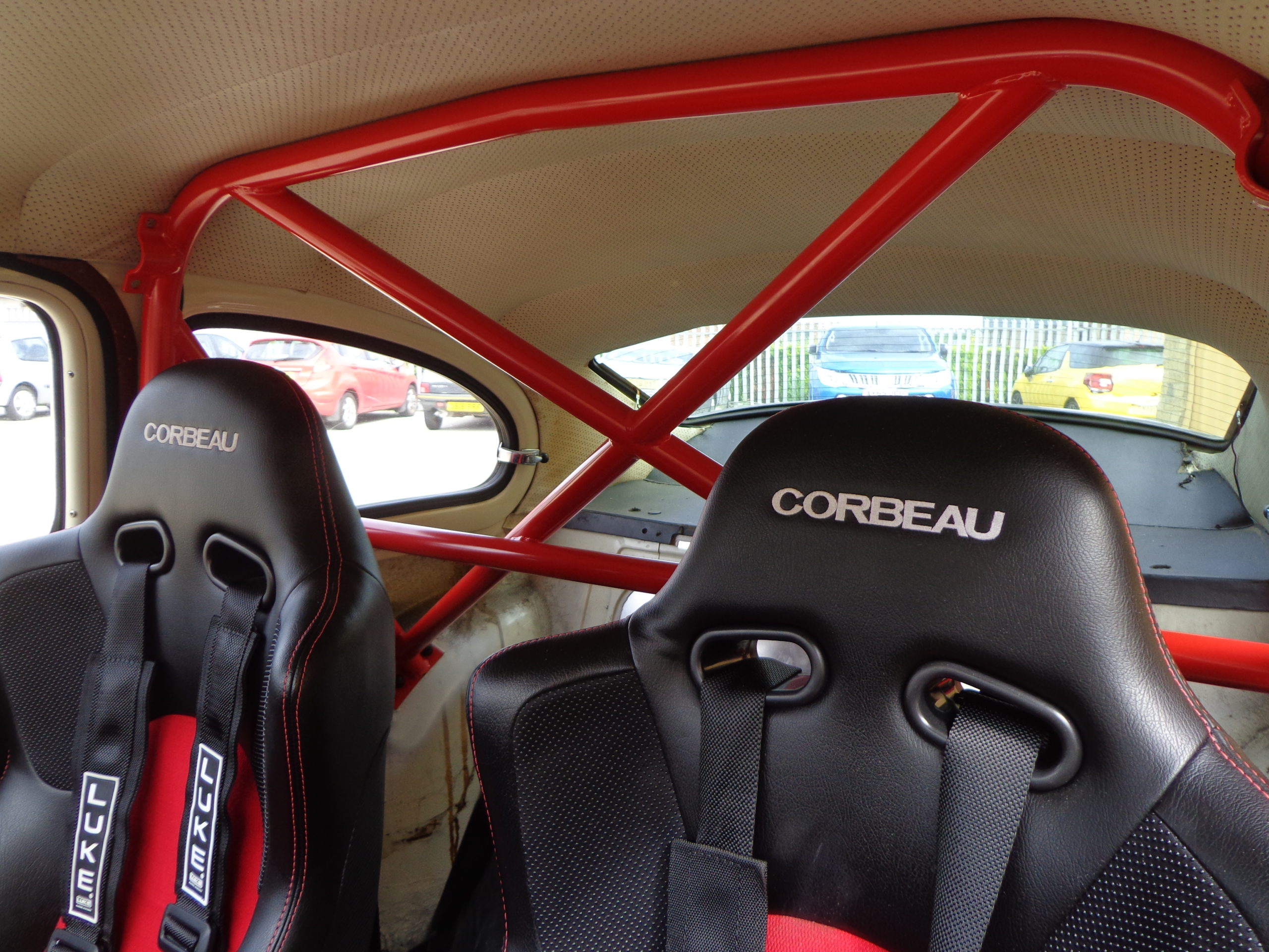 6 point bolt-in cage. Clears normal trim and dashboard. Mounts to floor and rear wheel arches.