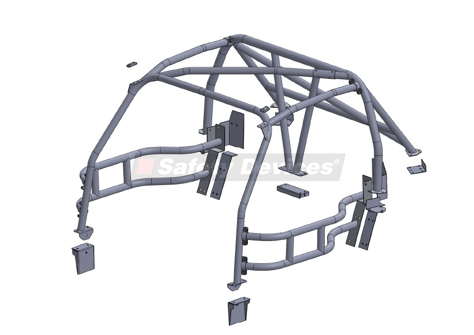 6 point bolt-in race cage. NOT suitable for road use. Hood does NOT fit. Comes with roof diagonal, single rear diagonal, harness bar and V-brace in main hoop. Single unique door bars. Designed to mount to OEM B-post structure which should not be modified in any way.
