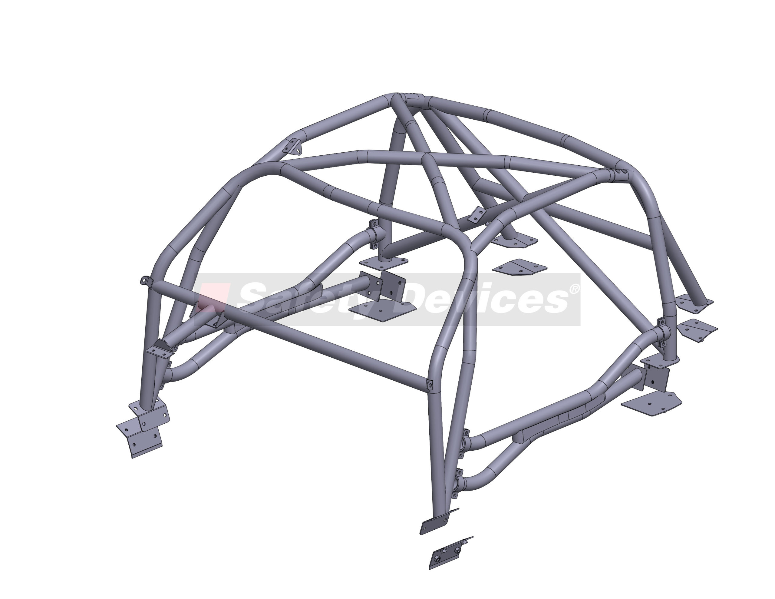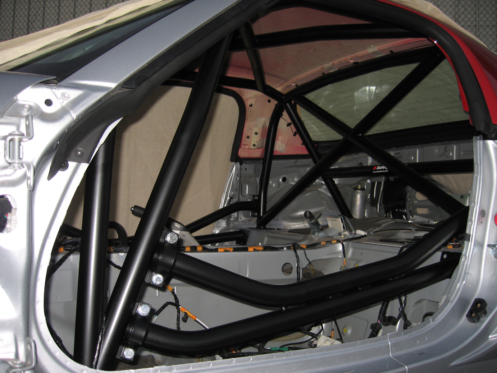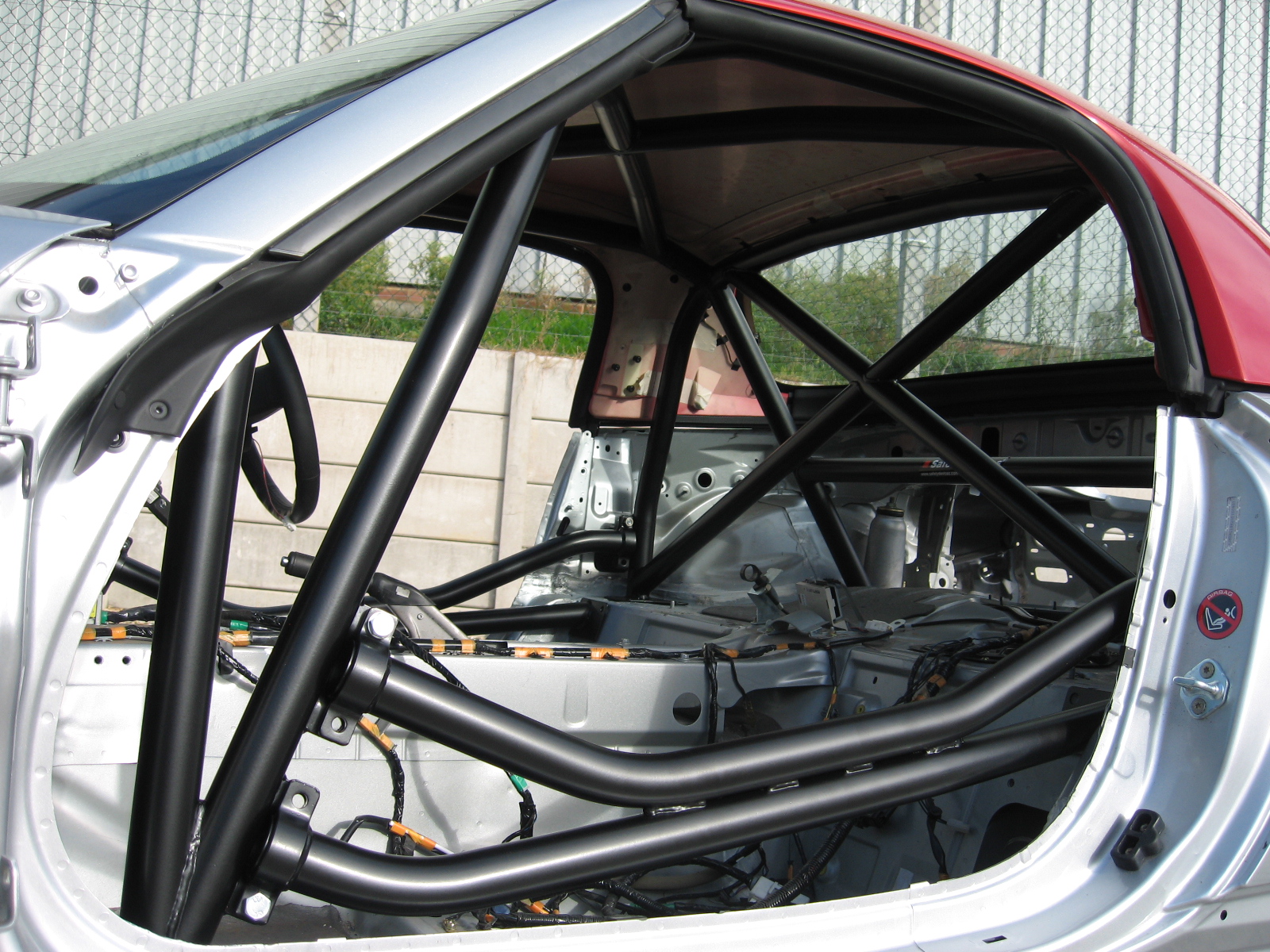 6 point bolt-in race cage. Comes with cross roof diagonal, cross diagonal in hoop, harness bar and. Double unique door bars. Will not fit with a metal folding roof. Will fit with an aftermarket fibreglass roof.